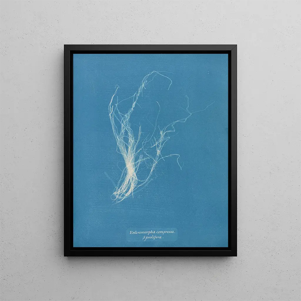 Anna Atkins, pionnière della fotografia botanica, ha saputo unire scienza e arte nelle sue opere. 'Enteromorpha compressa prolifera' è un'illustrazione emblematica del suo metodo unico, utilizzando la tecnica del cyanotype per catturare la bellezza delle alghe. In questa opera, le sfumature di blu e le forme delicate delle alghe sono messe in risalto, rivelando non solo la precisione scientifica ma anche un'estetica raffinata. Lavorando in un'epoca in cui la fotografia era ancora agli albori, Atkins ha aperto la strada a una nuova forma di espressione artistica che continua a ispirare artisti contemporanei. La sua innovativa applicazione delle tecniche di stampa d'arte ha permesso di creare opere che si distinguono per leggerezza e luminosità. Oggi, le sue creazioni sono ricercate sia per il loro valore storico sia per la capacità di arricchire gli spazi contemporanei con un tocco di natura e poesia. La stampa d'arte di questa opera è un'aggiunta perfetta per chi desidera introdurre un tocco di eleganza e serenità nella propria decorazione d'interni.