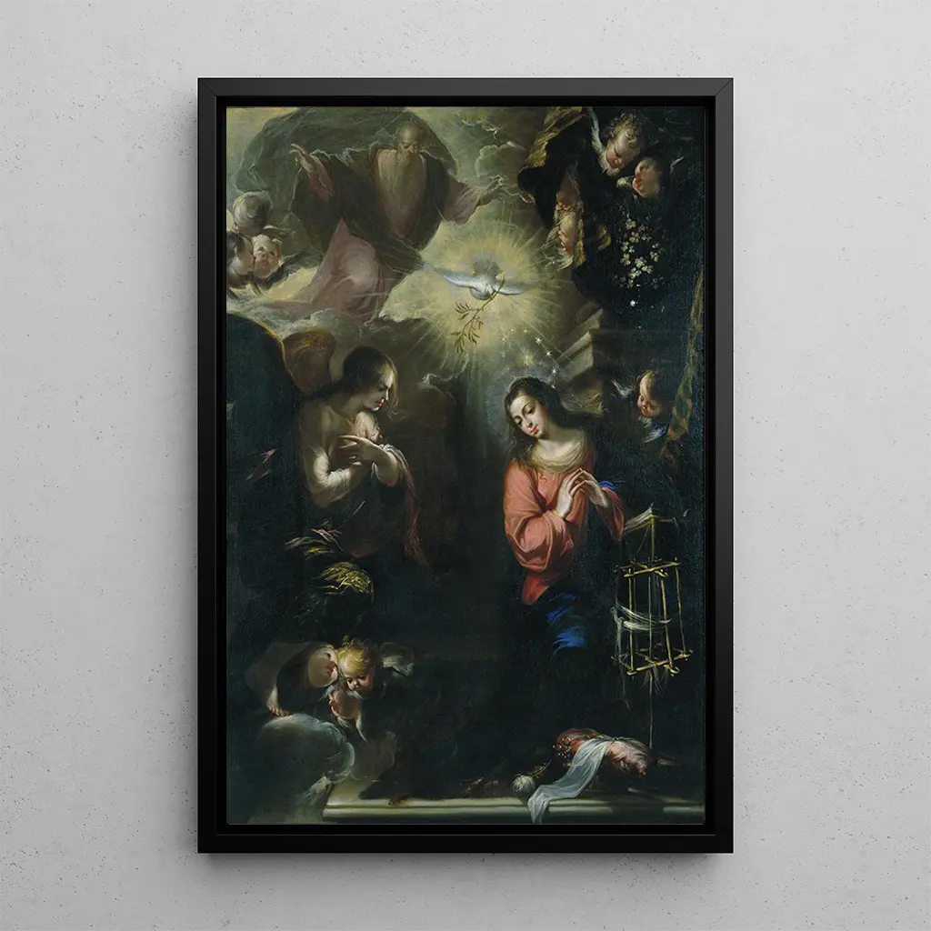 La riproduzione dell'Annonciation di Francisco de Solís costituisce un'aggiunta preziosa a qualsiasi decorazione d'interni. Che sia in un salotto, uno studio o una camera da letto, questa stampa d'arte porta un tocco di eleganza e serenità. La qualità di stampa garantisce fedeltà ai colori e ai dettagli dell'opera originale, permettendo di godere appieno del suo fascino estetico. Integrando questa tela nel vostro spazio, invitate non solo un'opera d'arte nel vostro quotidiano, ma anche una fonte di ispirazione e riflessione su temi universali come la fede e la rivelazione divina.