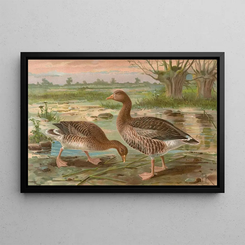Anser anser : un'ode alla natura selvaggia La stampa d'arte Anser anser di Johann Friedrich Naumann cattura la maestosa bellezza dell'oca cenerina nel suo habitat naturale. Con colori delicati e dettagli minuziosi, quest'opera evoca un'atmosfera pacifica e contemplativa. Le sfumature di marrone e grigio si mescolano armoniosamente, mentre lo sfondo sfocato mette in risalto il soggetto principale. La tecnica dell'acquerello, utilizzata con finezza, permette di rendere la leggerezza delle piume e la fluidità del movimento. Questa rappresentazione vivida invita lo spettatore a immergersi in un mondo in cui la natura regna sovrana. Johann Friedrich Naumann : un pioniere dell'ornitologia artistica Johann Friedrich Naumann, attivo nel XIX secolo, è riconosciuto per il suo ruolo essenziale nell'illustrazione ornithologica. Influenzato dal movimento naturalista, ha saputo unire arte e scienza, offrendo rappresentazioni precise degli uccelli della sua epoca. La sua passione per l'osservazione degli uccelli e il desiderio di immortalarli su tela lo hanno reso una figura imprescindibile nel campo dell'arte animale. Naumann ha anche contribuito alla conoscenza ornithologica attraverso i suoi scritti, facendo delle sue opere un punto di riferimento per gli appassionati d'arte e di natura. Un'acquisizione decorativa con molteplici vantaggi La stampa dell'opera Anser anser costituisce una scelta decorativa ideale per diversi spazi come il soggiorno, l'ufficio o la camera da letto. La qualità di stampa e la fedeltà ai dettagli originali ne fanno un pezzo d'arte affascinante che cattura lo sguardo. Integrando questa tela nella vostra decorazione d'interni, portate un tocco di natura e serenità nel vostro ambiente. L'attrattiva estetica di quest'opera, unita alla sua ricca storia, la rende un'aggiunta preziosa a qualsiasi collezione d'arte o spazio abitativo.