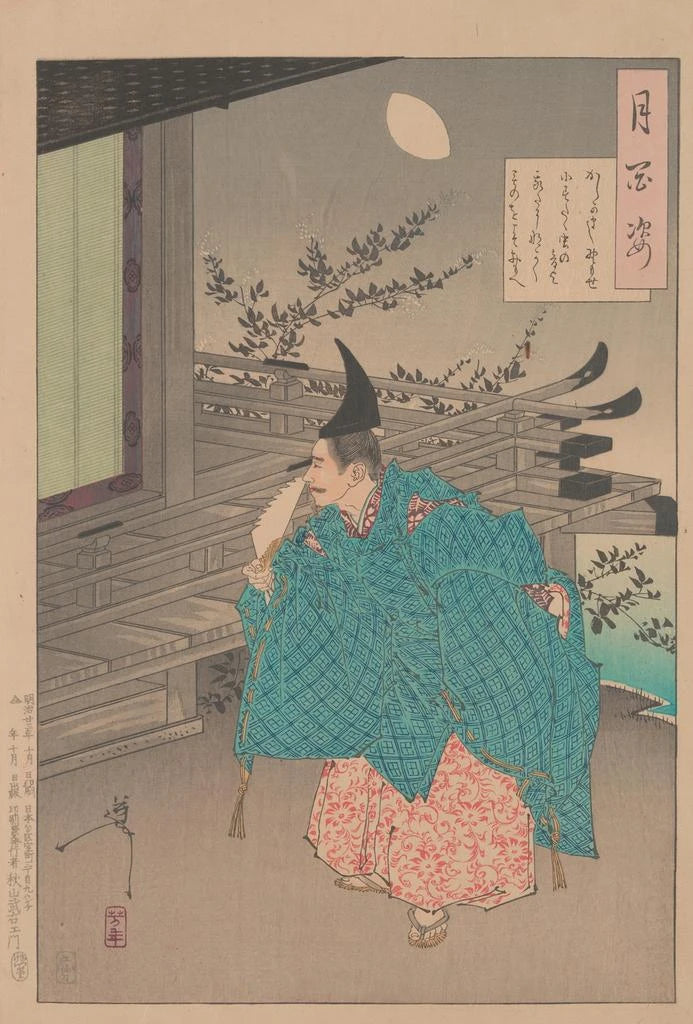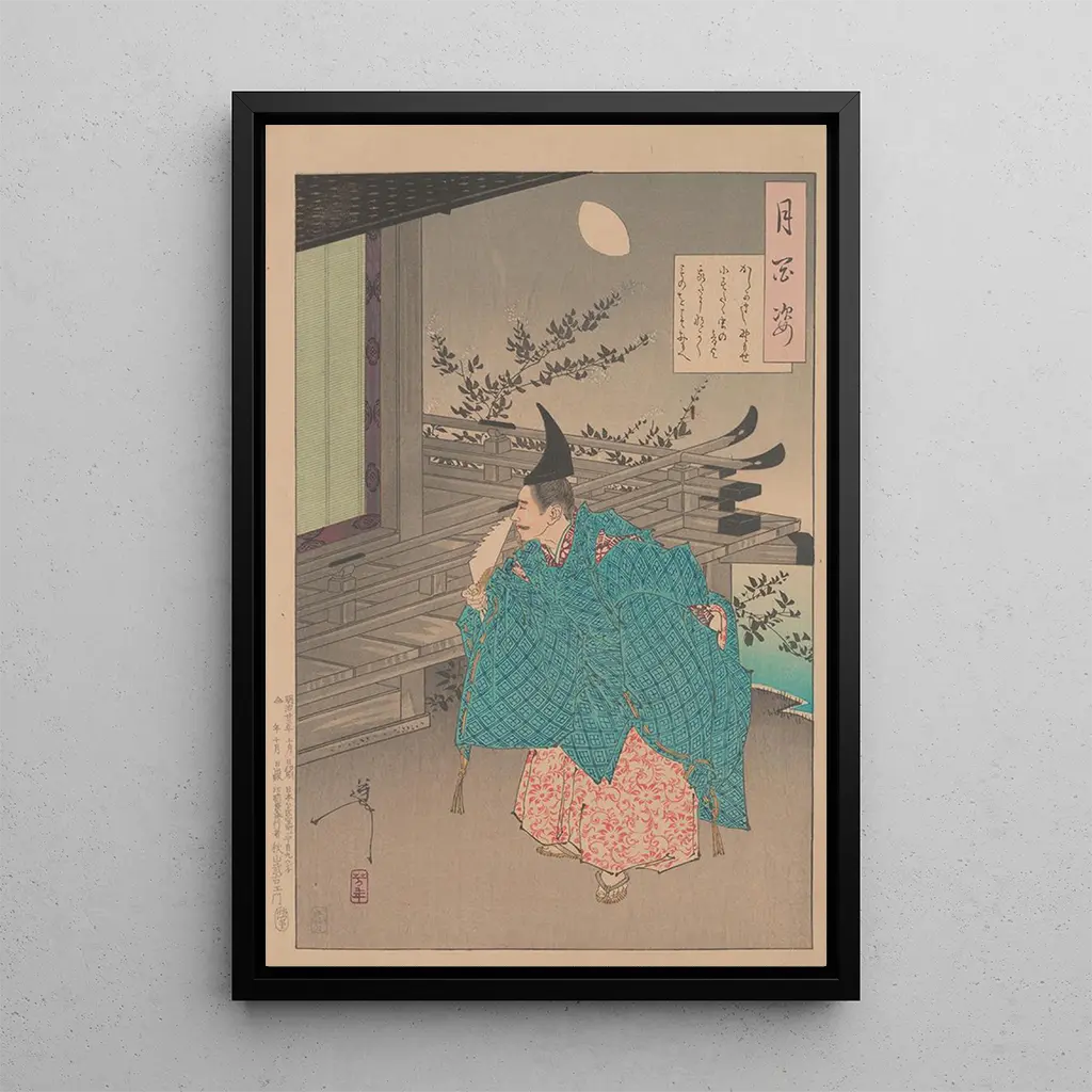 In questa affascinante opera, Tsukioka Yoshitoshi ci immerge in un universo notturno dove la luna illumina delicatamente le silhouette dei personaggi. Le tonalità morbide e le sfumature di blu creano un'atmosfera serena, quasi mistica. La tecnica dell'ukiyo-e, con le sue linee fluide e i dettagli minuziosi, dà vita a questa scena poetica. Le figure sembrano muoversi con grazia, come se danzassero sotto il chiar di luna, invitando lo spettatore a immergersi in questo momento sospeso nel tempo.