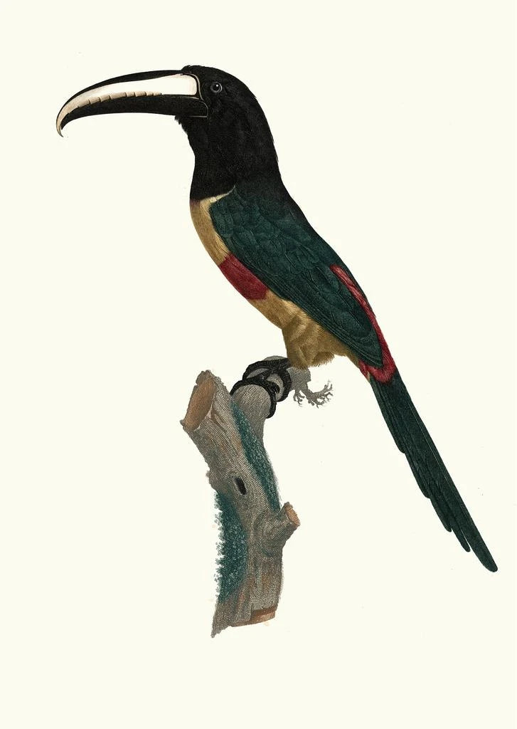 Jacques Barraband, peintre et illustrateur français du XVIIIe siècle, est reconnu pour ses représentations précises et poétiques des oiseaux. Influencé par le mouvement naturaliste, il a su capturer l'essence même de ses sujets avec une précision remarquable. Barraband a travaillé principalement pour le compte de la ménagerie du roi, ce qui lui a permis d'étudier de près les spécimens exotiques. Son œuvre, dont L'Aracari ceinture rouge est un exemple emblématique, témoigne de son engagement à allier art et science. À travers ses créations, il a contribué à enrichir la connaissance ornithologique de son époque.