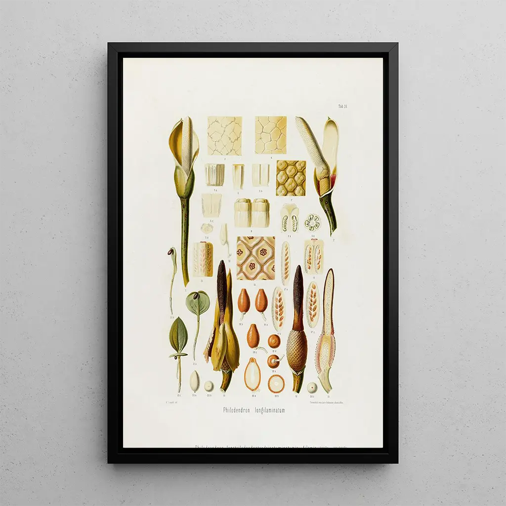 Aroideae Maximilianae Pl36 : una bellezza vegetale da scoprire La stampa d'arte Aroideae Maximilianae Pl36 è un'opera affascinante che celebra la ricchezza delle forme e dei colori del mondo vegetale. Con le sue tonalità vibranti di verde e giallo, questa tela attira immediatamente l'occhio. La tecnica di incisione utilizzata dall'artista permette di rendere con precisione i dettagli delle foglie e degli steli, creando un'atmosfera allo stesso tempo rilassante e dinamica. Ogni elemento della composizione sembra vibrare sotto la luce, invitando lo spettatore a immergersi nell'universo lussureggiante delle piante tropicali. Heinrich Wilhelm Schott : un pioniere della botanica artistica Heinrich Wilhelm Schott, botanico e illustratore del XIX secolo, è riconosciuto per i suoi contributi alla classificazione delle piante, in particolare le aroides. Il suo lavoro si colloca all'incrocio tra arte e scienza, dove ha saputo catturare la bellezza delle specie vegetali, portando allo stesso tempo conoscenze preziose sulla loro classificazione. Influenzato dalle esplorazioni botaniche della sua epoca, Schott ha realizzato numerose illustrazioni che sono diventate riferimenti nel settore. Il suo lascito perdura attraverso le sue opere, che continuano a ispirare gli appassionati di botanica e di arte. Una riproduzione decorativa con molteplici vantaggi La stampa dell'opera Aroideae Maximilianae Pl36 rappresenta una scelta decorativa ideale per diversi spazi, che sia in un soggiorno, in un ufficio o in una camera da letto. La qualità di stampa e la fedeltà ai dettagli originali ne fanno un pezzo d'arte coinvolgente che valorizza l'estetica della vostra casa. Integrando questa tela nella vostra decorazione, portate un tocco di natura ed eleganza, suscitando anche l'ammirazione dei vostri ospiti. È un'opera che, oltre alla sua bellezza, evoca un profondo rispetto per la biodiversità e l'arte botanica.