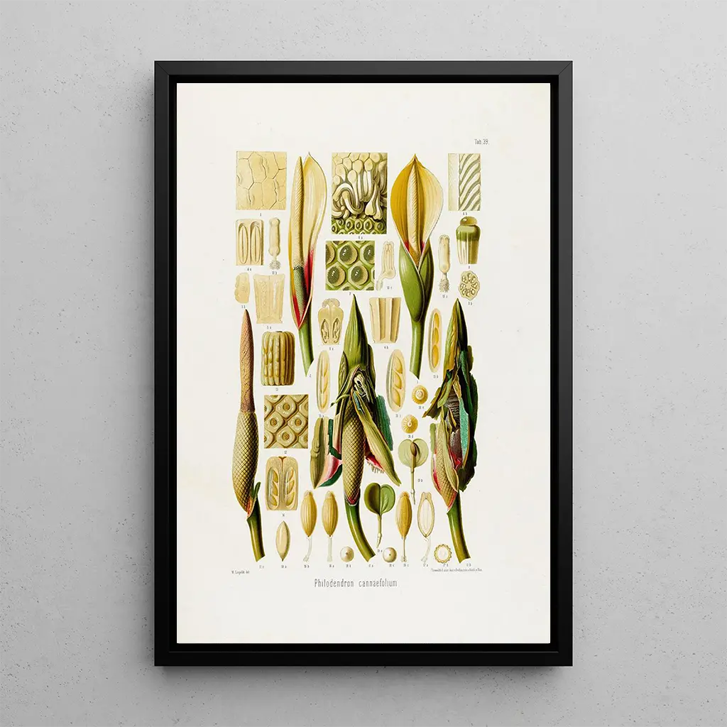 Aroideae Maximilianae Pl39 : un omaggio alla diversità botanica La stampa d'arte Aroideae Maximilianae Pl39, realizzata da Heinrich Wilhelm Schott, ci trasporta in un mondo di colori vibranti e di forme organiche. Quest'opera mette in evidenza la ricchezza delle Aroideae, una famiglia di piante affascinanti, con dettagli che sembrano quasi palpabili. Le tonalità variate di verde, giallo e marrone si intrecciano armoniosamente, creando una composizione dinamica e vivace. La tecnica dell'acquarello, utilizzata da Schott, permette di rendere la leggerezza delle foglie e la profondità delle ombre, offrendo così un'atmosfera allo stesso tempo serena e coinvolgente. Heinrich Wilhelm Schott : un maestro dell’illustrazione botanica Heinrich Wilhelm Schott, botanico e illustratore del XIX secolo, è riconosciuto per i suoi contributi significativi alla botanica e all’arte. Le sue esplorazioni nelle regioni tropicali gli hanno permesso di scoprire e documentare numerose specie di piante. Schott ha saputo unire rigore scientifico e sensibilità artistica, creando opere che sono sia informative che estetiche. La stampa d'arte Aroideae Maximilianae Pl39 è un esempio perfetto del suo talento, illustrando non solo la bellezza delle piante, ma anche la loro importanza nell’ecosistema. Una riproduzione decorativa con molteplici vantaggi La stampa d'arte Aroideae Maximilianae Pl39 è un elemento decorativo che saprà abbellire qualsiasi spazio, che si tratti di un soggiorno, di un ufficio o di una camera da letto. La qualità di stampa garantisce una fedeltà ai dettagli dell’opera originale, offrendo al contempo un tocco di natura alla vostra decorazione d'interni. Con il suo fascino estetico, questa tela invita alla contemplazione e alla serenità, creando un’atmosfera rilassante. Scegliendo quest'opera, fate la scelta di un’arte che celebra la biodiversità e arricchisce il vostro ambiente in modo elegante e ispirante.