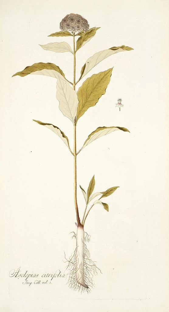 Nikolaus Joseph Freiherr von Jacquin, botanico e artista del XVIII secolo, ha saputo unire le sue passioni per la scienza e l'arte. Le sue esplorazioni botaniche, in particolare in America, hanno arricchito le sue conoscenze e influenzato il suo lavoro artistico. In qualità di pioniere nel campo dell'illustrazione botanica, ha creato opere che sono sia documenti scientifici che pezzi d'arte. "Asclepias citrifolia" testimonia il suo impegno nel catturare la bellezza della flora, contribuendo alla scienza botanica, rendendolo una figura emblematica del suo tempo.