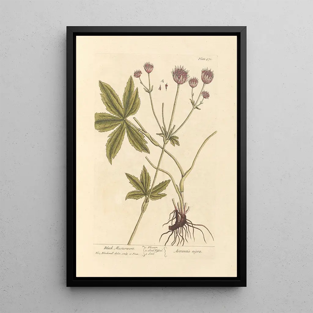 L'opera "Astrance noire" di Elizabeth Blackwell si distingue per la sua rappresentazione minuziosa e poetica di questa pianta. I dettagli precisi dei petali e delle foglie, associati a una palette di colori tenui, creano un'atmosfera al tempo stesso rilassante e affascinante. La tecnica dell'acquarello, utilizzata con raffinatezza, permette di rendere la trasparenza e la leggerezza del fiore, valorizzando le sfumature sottili di verde e di violetto. Questa stampa d'arte invita a una contemplazione attenta, dove ogni elemento della composizione sembra raccontare una storia di bellezza naturale.