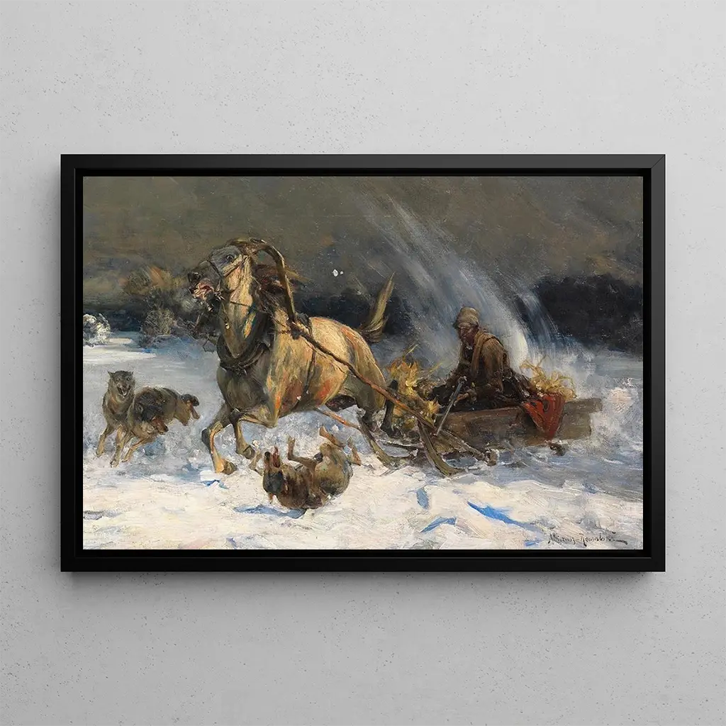 Attacco dei lupi : un dramma selvaggio e coinvolgente L'opera "Attacco dei lupi" di Alfred von Wierusz-Kowalski immerge lo spettatore in una scena di tensione drammatica, dove la natura selvaggia si dispiega con forza. La composizione, centrata sui lupi in movimento, è accentuata da colori scuri e sfumature di grigio che evocano la freddezza dell'inverno. La tecnica dell'artista, che mescola realismo e romanticismo, permette di percepire l'intensità dell'istante. I dettagli minuziosi degli animali e del paesaggio circostante creano un'atmosfera immersiva, dove ogni elemento contribuisce alla narrazione di questa caccia selvaggia. Questa tela è un vero omaggio alla bellezza e alla crudeltà della natura. Alfred von Wierusz-Kowalski : un maestro della stampa d'arte animale Alfred von Wierusz-Kowalski, nato nel 1849, è riconosciuto per le sue rappresentazioni impressionanti di animali selvaggi, in particolare nel contesto dei paesaggi polacchi. Influenzato dal romanticismo e dal realismo, ha saputo catturare la maestà e la brutalità della fauna. La sua carriera, segnata da esposizioni a Parigi e Monaco, gli ha permesso di farsi un nome nel mondo dell'arte. "Attacco dei lupi" è una delle sue opere più emblematiche, illustrando il suo talento nel dipingere scene di caccia con un'intensità drammatica. La sua opera testimonia di un'epoca in cui la natura selvaggia era fonte di ispirazione e di timore. Una riproduzione decorativa con molteplici vantaggi La riproduzione di "Attacco dei lupi" è un pezzo decorativo che porterà un tocco di audacia nel vostro interno, che sia in un salotto, uno studio o una camera da letto. La qualità della riproduzione garantisce una fedeltà impressionante ai dettagli e ai colori dell'opera originale, offrendo un fascino estetico coinvolgente. Questo quadro, con la sua atmosfera selvaggia e drammatica, invita alla riflessione e all'evasione. Integrando questa stampa d'arte nella vostra decorazione, aggiungete una forte dimensione artistica, celebrando la bellezza e la potenza della natura selvaggia, come percepito da Wierusz-Kowalski.