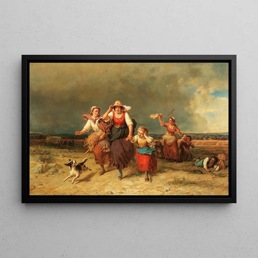 Avant la pluie : un moment de tension et de beauté "Avant la pluie" de François Verheyden capture un instant fugace, où la nature semble retenir son souffle avant l'arrivée d'une tempête. Le nuages sombres s'accumulent dans le ciel, tandis que la lumière du soleil lutte pour percer à travers les ombres menaçantes. La technique de Verheyden, qui utilise des coups de pinceau délicats pour représenter les reflets sur l'eau, crée une atmosphère à la fois dramatique et poétique. Les teintes de bleu et de gris dominent la composition, accentuant la tension palpable de ce moment avant l'orage, invitant le spectateur à ressentir l'imminence de la pluie. François Verheyden : un maître du paysage belge François Verheyden, actif au XIXe siècle, est reconnu pour ses paysages qui capturent la beauté fugace de la nature belge. Influencé par le réalisme et le romantisme, il a su traduire avec finesse les nuances de la lumière et de l'atmosphère dans ses œuvres. Verheyden a souvent peint des scènes de la campagne belge, mettant en avant la relation entre l'homme et son environnement. "Avant la pluie" est emblématique de son style, illustrant son talent pour évoquer des émotions à travers des paysages, tout en témoignant de l'importance de la nature dans l'art de son époque. Une acquisition décorative aux multiples atouts La reproduction de "Avant la pluie" est un ajout captivant à votre décoration intérieure, qu'il s'agisse d'un salon, d'un bureau ou d'une chambre. Son ambiance dramatique et ses couleurs nuancées apportent une touche d'élégance et de profondeur à tout espace. La qualité de la stampa d'arte assure une fidélité à l'œuvre originale, permettant d'apprécier pleinement la maîtrise de Verheyden. En intégrant cette toile dans votre décor, vous créez un point focal qui suscite la conversation et invite à la contemplation, tout en enrichissant votre environnement de beauté artistique.