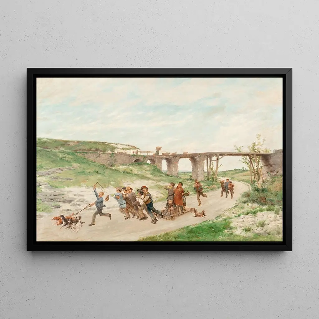 Enfants Jouant : una scena di gioia e innocenza "Enfants Jouant" di Antoine Édouard Joseph Moulinet cattura un istante di pura gioia, dove i bambini si divertono in un ambiente bucolico. I colori vivaci e le espressioni allegre dei giovani protagonisti trasmettono un'atmosfera di felicità e spensieratezza. La tecnica di Moulinet, caratterizzata da pennellate fluide e da un'attenzione particolare ai dettagli, crea una scena vivace e dinamica. Questa stampa d'arte evoca non solo l'innocenza dell'infanzia, ma anche la bellezza dei momenti semplici della vita, invitando lo spettatore a ricordare i propri ricordi d'infanzia. Antoine Édouard Joseph Moulinet: un artista del XIX secolo Antoine Édouard Joseph Moulinet, attivo nel XIX secolo, è un pittore francese la cui opera si distingue per sensibilità e approccio realistico. Influenzato dal movimento romantico, ha saputo catturare scene di vita quotidiana con una finezza notevole. "Enfants Jouant" illustra perfettamente il suo stile, mescolando realismo e tenerezza. In un'epoca in cui l'arte cercava di rappresentare emozioni autentiche, Moulinet si è imposto come un artista capace di trasmettere la bellezza delle interazioni umane, in particolare quelle dell'infanzia. Un acquisto decorativo con molteplici vantaggi La stampa d'arte "Enfants Jouant" di Antoine Édouard Joseph Moulinet è una scelta ideale per abbellire il vostro spazio abitativo. Che sia in un soggiorno, in una cameretta o in un ufficio, questa tela porterà un tocco di freschezza e allegria. La qualità della riproduzione garantisce fedeltà ai colori e ai dettagli dell'opera originale, offrendo al contempo un indiscusso fascino estetico. Questa stampa d'arte non è solo un elemento decorativo, ma anche un ricordo della gioia e dell'innocenza dell'infanzia, creando un'atmosfera calda e accogliente nel vostro interno.