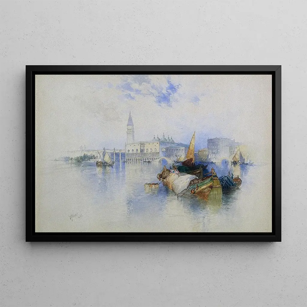 Bassin de San Marco : una sinfonia di luce e acqua Il quadro "Bassin de San Marco" di Thomas Moran evoca un'atmosfera incantata in cui la luce danza sulle acque calme della laguna veneziana. Le sfumature di blu e di verde si mescolano armoniosamente, creando una sensazione di serenità e sogno. La tecnica dell'acquarello, padroneggiata da Moran, permette di catturare la trasparenza dell'acqua e il riflesso degli edifici storici che costeggiano il bacino. Questo quadro invita lo spettatore a immergersi in un momento di contemplazione, a percepire la dolcezza dell'aria e la bellezza senza tempo di Venezia. Thomas Moran : un pioniere del paesaggio americano Thomas Moran, nato nel 1837, è un pittore e incisore americano riconosciuto per i suoi paesaggi maestosi. Influenzato dal movimento romantico e dai paesaggi europei, ha saputo integrare elementi della natura selvaggia americana nella sua opera. Moran ha svolto un ruolo cruciale nella promozione dei parchi nazionali negli Stati Uniti, grazie anche alle sue rappresentazioni del Grand Canyon e di Yellowstone. Il suo stile, caratterizzato da colori vivaci e composizioni drammatiche, ha segnato un'epoca in cui l'arte americana cercava di affermarsi sulla scena internazionale. Una riproduzione decorativa con molteplici vantaggi La riproduzione del "Bassin de San Marco" è un pezzo decorativo ideale per arricchire il vostro interno, che sia in un soggiorno, in uno studio o in una camera da letto. La qualità di stampa e la fedeltà all'opera originale garantiscono un fascino estetico indiscutibile. Questo quadro, con i suoi colori rilassanti e la sua atmosfera serena, apporterà un tocco di eleganza e raffinatezza alla vostra decorazione. Scegliendo questa stampa d'arte, inviterete non solo un capolavoro nel vostro spazio, ma anche un pezzo di storia e cultura.