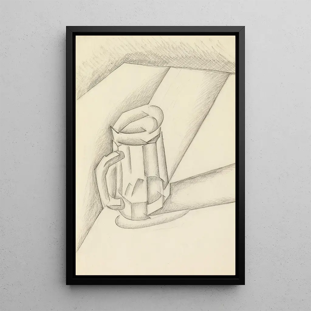 Juan Gris, nato in Spagna nel 1887, si è rapidamente affermato come uno degli artisti principali del movimento cubista accanto a Picasso e Braque. Influenzato dal fauvismo e dal simbolismo, sviluppa uno stile unico che unisce rigore geometrico e calore emotivo. Il suo periodo parigino, in cui si stabilisce nel 1906, segna una svolta decisiva nella sua carriera. Gris si distingue per la sua capacità di trasformare oggetti banali in opere d'arte, come testimonia questa stampa d'arte di una chope de bière, che trascende la sua utilità per diventare un'esplorazione estetica di forma e colore.