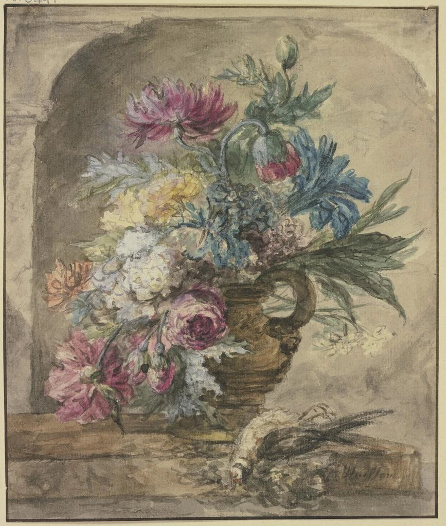 Bouquet di fiori che include un uccello morto - Jan van Huysum