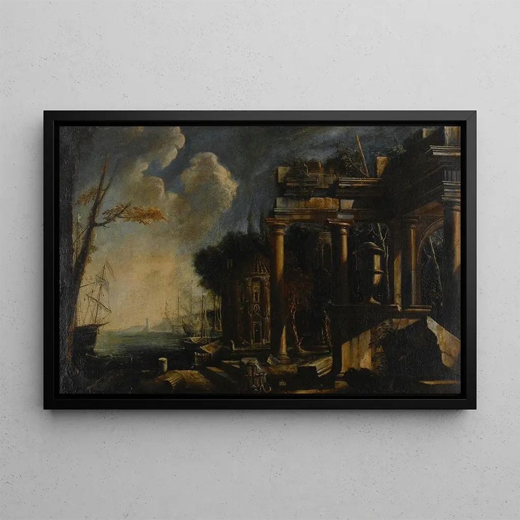 Niccolò Codazzi, attivo nel XVII secolo, è riconosciuto per i suoi paesaggi immaginari e le sue capricci architettonici. Influenzato dal barocco italiano, è riuscito a catturare l'essenza della sua epoca aggiungendo la sua visione personale. Codazzi ha spesso collaborato con altri artisti, il che ha arricchito il suo stile e la sua tecnica. Le sue opere, sebbene spesso idealizzate, riflettono una profonda comprensione dello spazio e della luce, elementi essenziali del barocco. Come artista, ha contribuito alla popolarità dei paesaggi immaginari, un genere che ha affascinato gli appassionati d'arte del suo tempo e che continua a ispirare ancora oggi.