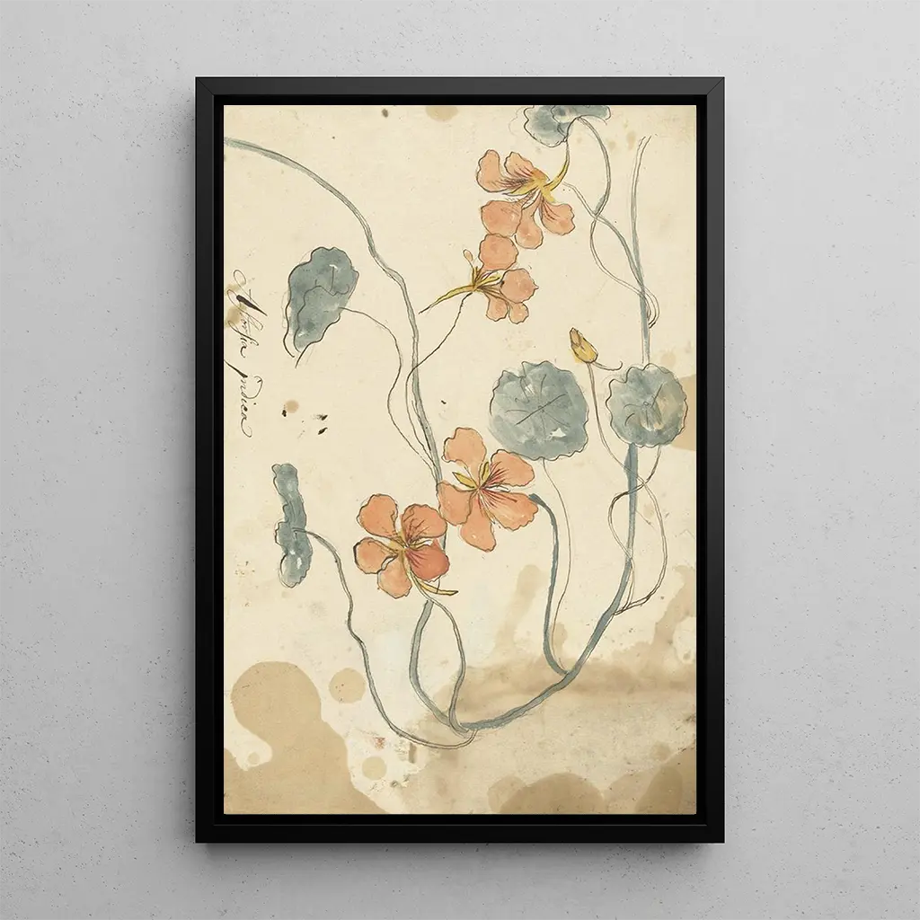 Dans "Capucine", Elias van Nijmegen capture l'essence même de cette fleur vibrante, symbole de joie et de vitalité. Les couleurs chaudes et lumineuses de la capucine, avec ses nuances d'orange et de rouge, illuminent la toile et créent une atmosphère accueillante. La technique de peinture à l'huile permet de rendre les textures délicates des pétales et des feuilles, offrant une sensation de profondeur et de mouvement. Ce tableau évoque la beauté simple de la nature, invitant le spectateur à apprécier les petites merveilles du monde floral.