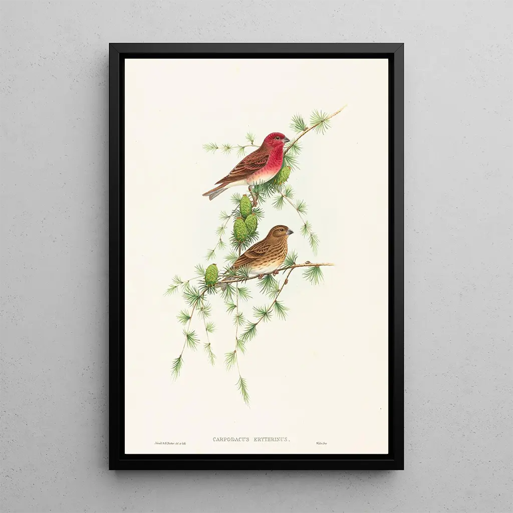 John Gould, naturalista e illustratore britannico del XIX secolo, è considerato uno dei più grandi ornitologi del suo tempo. La sua passione per gli uccelli lo ha portato a esplorare regioni remote, dove ha raccolto esemplari e realizzato illustrazioni di una precisione senza precedenti. Le sue opere, tra cui la stampa d'arte Carpodacus erythrinus, testimoniano un'epoca in cui scienza e arte si univano per documentare la biodiversità. Influenzato dalle scoperte di Charles Darwin, Gould ha saputo unire rigore scientifico e sensibilità artistica, lasciando un’eredità duratura nel campo dell’illustrazione zoologica.