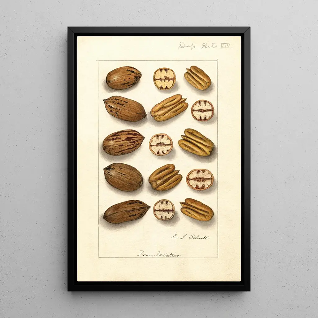 La stampa d'arte di Carya illinoinensis è una scelta ideale per abbellire la tua casa, che sia nel soggiorno, in ufficio o in camera da letto. La qualità di stampa garantisce una fedeltà notevole ai colori e ai dettagli dell'opera originale, aggiungendo un tocco di eleganza e serenità alla tua decorazione. Questo quadro, vero omaggio alla natura, cattura lo sguardo e stimola conversazioni, creando un'atmosfera calda e accogliente. Scegliendo questa tela, opti per un elemento decorativo che unisce estetica e rispetto per l'ambiente, arricchendo così il tuo spazio vitale.