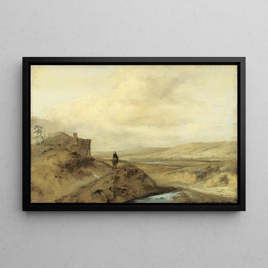 Cavalier dans les dunes : une évasion vers l'aventure Le tableau "Cavalier dans les dunes" de Philips Wouwerman capture un moment d'évasion et d'aventure. La scène dépeint un cavalier en pleine nature, évoluant à travers des dunes dorées sous un ciel vaste et lumineux. Les détails minutieux de la monture et des paysages environnants, associés à une palette de couleurs chaudes et terreuses, créent une atmosphère dynamique et vivante. Wouwerman, maître de la peinture de genre, réussit à transmettre une sensation de mouvement et de liberté, invitant le spectateur à partager cette expérience équestre au cœur de la nature. Philips Wouwerman : l'art de la narration visuelle au XVIIe siècle Philips Wouwerman, peintre néerlandais du XVIIe siècle, est célèbre pour ses représentations de scènes équestres et de paysages. Son œuvre s'inscrit dans le courant baroque, où il excelle à capturer des moments de vie quotidienne avec une grande maîtrise technique. Influencé par des artistes comme Frans Snyders, Wouwerman développe un style distinctif, caractérisé par des compositions dynamiques et des jeux de lumière. "Cavalier dans les dunes" illustre parfaitement son talent pour raconter des histoires à travers ses tableaux, tout en mettant en avant la beauté de la nature et des chevaux. Une acquisition décorative aux multiples atouts La reproduction du tableau "Cavalier dans les dunes" est un choix décoratif qui saura séduire les amateurs d'art et d'aventure. Que ce soit dans un salon, un bureau ou une chambre, cette toile apporte une touche d'élégance et de dynamisme à votre intérieur. La qualité de l'impression assure une fidélité exceptionnelle aux détails et aux couleurs de l'œuvre originale, permettant de profiter pleinement de cette scène captivante. Avec son attrait esthétique, cette stampa d'arte enrichira votre espace de vie tout en évoquant l'esprit d'aventure et de liberté.