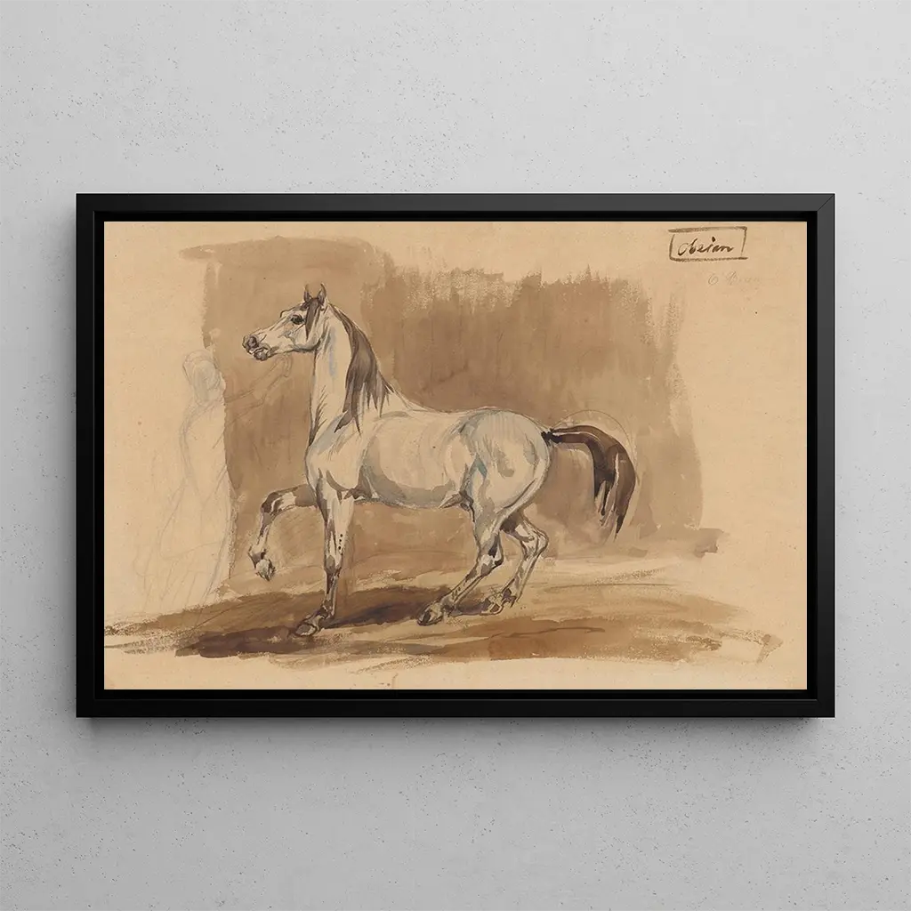 Cheval arabe gris Obeian : la majesté d'un noble destrier Cheval arabe gris Obeian, œuvre de Piotr Michałowski, capture la beauté et la puissance d'un cheval majestueux. La toile dépeint un animal au pelage argenté, dont les détails minutieux révèlent la finesse de sa musculature et l'élégance de sa posture. Michałowski, en utilisant des techniques de peinture réalistes, parvient à transmettre une atmosphère de force et de grâce. Le fond sobre met en valeur le sujet principal, créant un contraste qui accentue la présence imposante de ce cheval. Cette œuvre est une célébration de la beauté animale, invitant le spectateur à apprécier la noblesse de cet équidé. Piotr Michałowski : un maître du réalisme animalier Piotr Michałowski, peintre polonais du XIXe siècle, est reconnu pour ses représentations réalistes de chevaux et de scènes de la vie rurale. Formé à l'Académie des beaux-arts de Varsovie, il s'inspire des traditions artistiques européennes tout en intégrant des éléments de son héritage culturel. Sa passion pour les chevaux, qu'il considère comme des symboles de liberté et de beauté, transparaît dans chacune de ses œuvres. Michałowski a su capturer l'essence même de ces animaux, faisant de Cheval arabe gris Obeian une pièce emblématique de son travail, qui témoigne de son talent et de son engagement envers le réalisme. Une acquisition décorative aux multiples atouts La reproduction de Cheval arabe gris Obeian est un choix décoratif qui apportera une touche d'élégance à votre intérieur. Que ce soit dans un bureau, un salon ou une chambre, cette toile s'intègre parfaitement dans divers styles de décoration, ajoutant une note de sophistication. La qualité de la reproduction assure une fidélité aux détails de l'œuvre originale, permettant d'apprécier pleinement la beauté de ce cheval. En choisissant cette reproduction, vous offrez à votre espace un élément d'art qui évoque à la fois la puissance et la grâce, tout en enrichissant votre environnement visuel de manière significative.