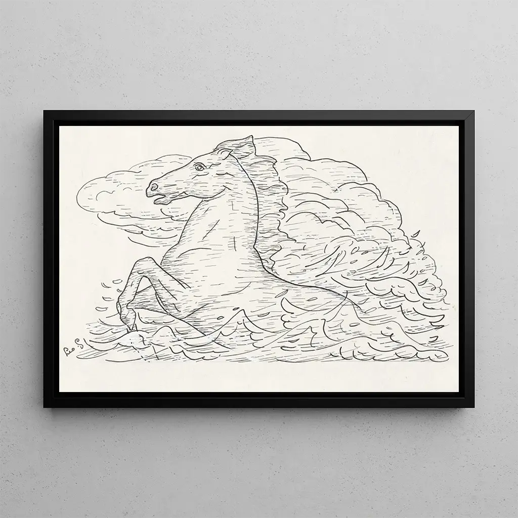 La stampa d'arte di Cheval dans la Mer ci immerge in una scena vibrante dove la potenza animale incontra l'immensità dell'oceano. Leo Gestel, con la sua tecnica audace, utilizza colori vivaci per catturare il movimento e l'energia di questo momento fugace. Le onde si infrangono intorno al cavallo, creando una dinamica che evoca libertà e forza. La luce svolge un ruolo essenziale, illuminando le forme e accentuando le texture dell'acqua e del cavallo. Quest'opera, allo stesso tempo selvaggia e poetica, ci invita a percepire la connessione profonda tra l'uomo, l'animale e l'elemento marino.
