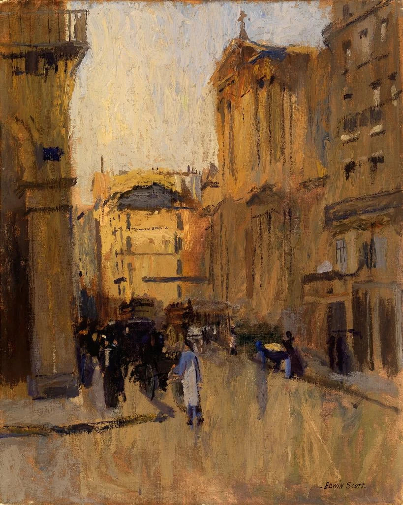 Frank Edwin Scott, figura emblematica dell’inizio del XX secolo, ha saputo imporsi nel mondo dell’arte grazie alla sua visione unica. La sua capacità di fondere la luce e l’architettura ha influenzato molti artisti contemporanei, che hanno visto in lui un precursore di un nuovo approccio pittorico. Scott è stato ispirato dai grandi maestri del passato, ma ha anche cercato di esplorare temi moderni, in particolare il rapporto tra l’uomo e il suo ambiente. La sua opera è una testimonianza della sua epoca, ma anche una riflessione su questioni eterne. Attraverso i suoi dipinti, ci invita a riscoprire luoghi spesso dimenticati, a vedere oltre l’apparenza e a percepire la profondità delle emozioni che suscitano. La sua eredità