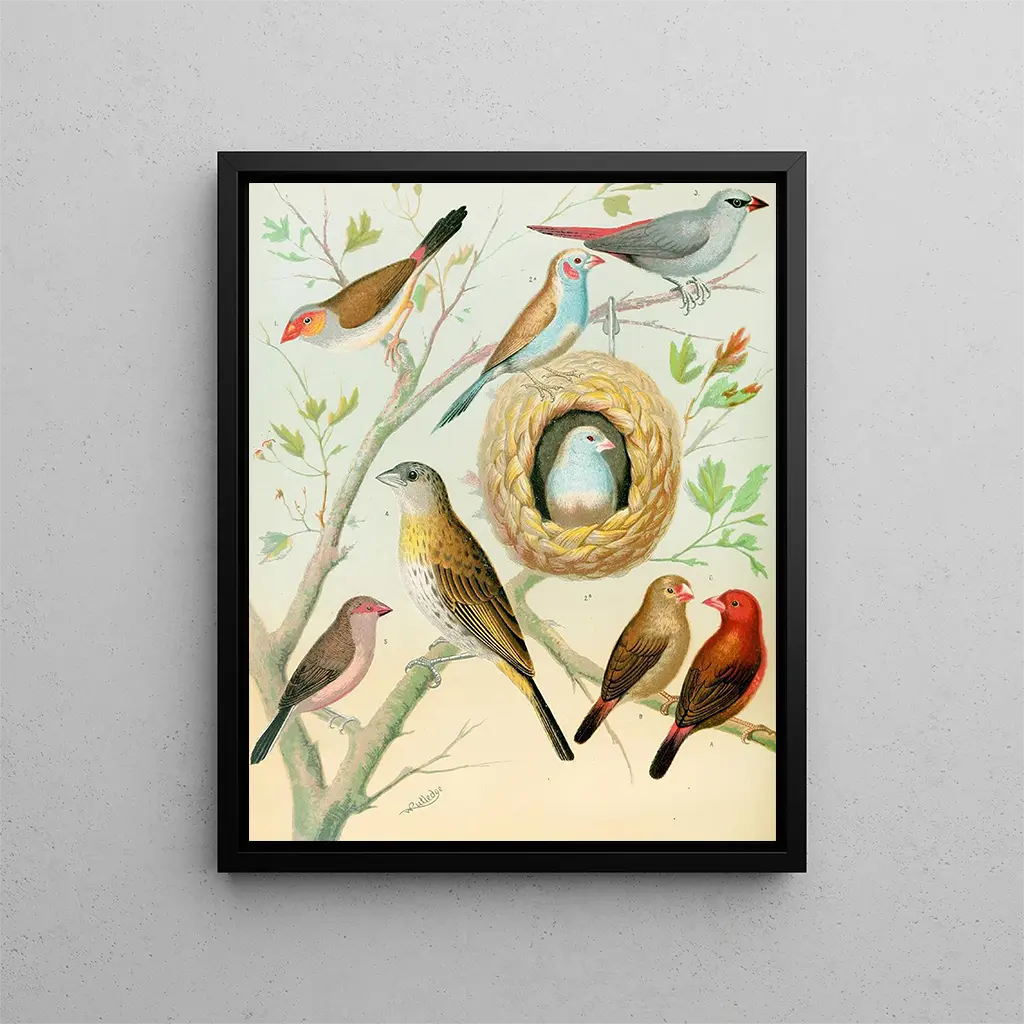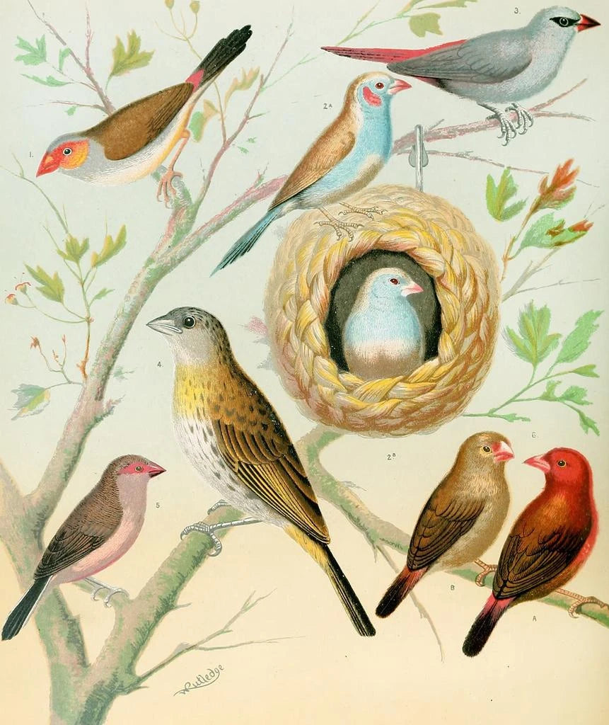 Stampa d'arte Waxbills, pinson safran e pinson del fuoco africano - W. A. Blakston