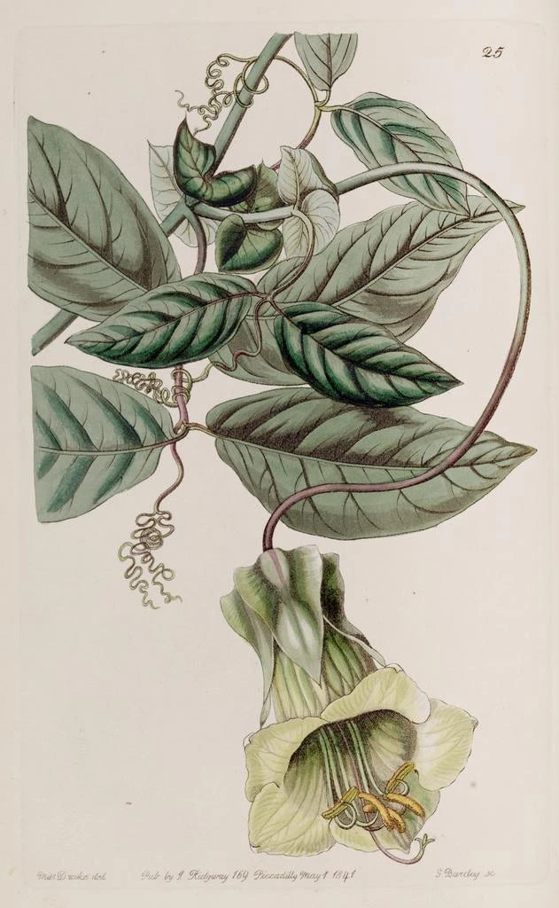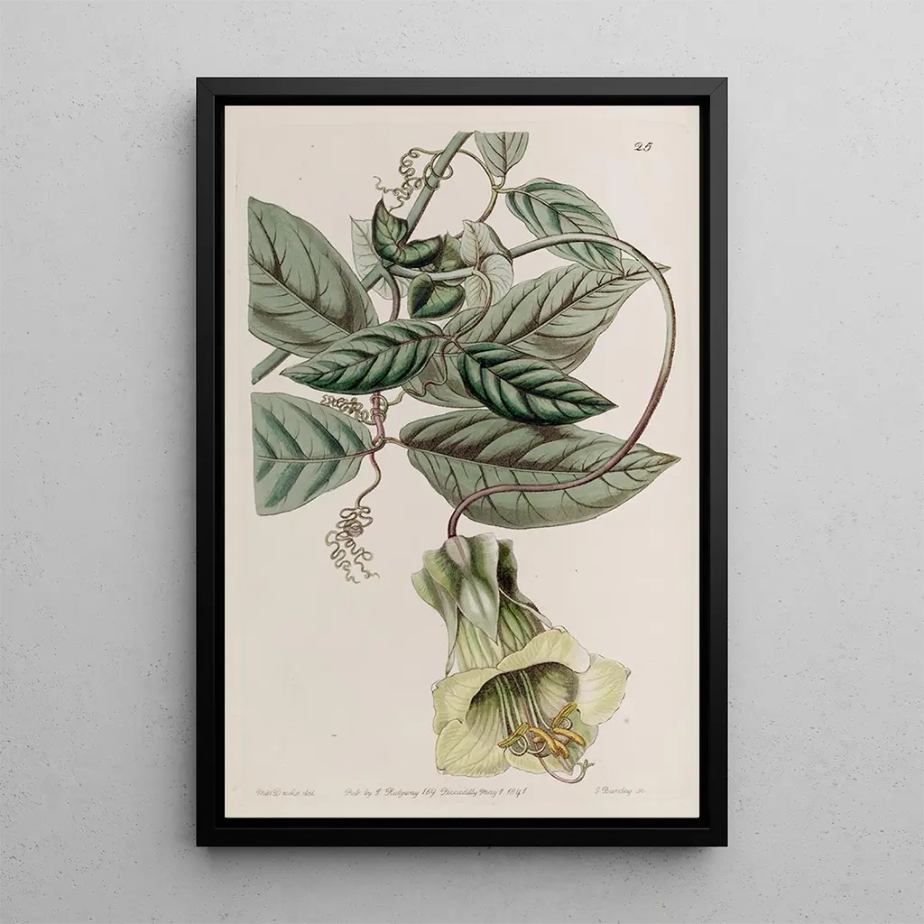 Sydenham Edwards, actif au début du XIXe siècle, est une figure emblématique de l’illustration botanique. Son parcours artistique, marqué par une formation à la Royal Academy, lui a permis de développer un style unique, alliant précision scientifique et esthétique raffinée. Ses œuvres, dont la Cobée changeante, reflètent l’engouement de l’époque pour la botanique et les explorations florales. Edwards a collaboré avec des botanistes de renom, contribuant à enrichir les connaissances sur la flore. Son héritage artistique perdure, inspirant les passionnés d’art et de nature à travers les générations.