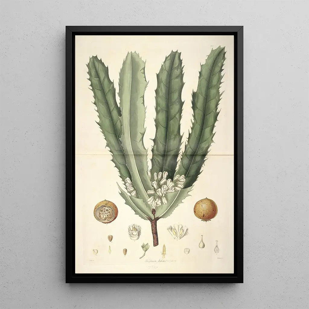 La riproduzione Collectanea botanica Pl26 ci immerge in un universo floreale vibrante e delicato. Le sfumature di verde, rosa e giallo si intrecciano armoniosamente, creando una composizione che evoca la bellezza effimera delle piante. Ogni dettaglio è accuratamente riprodotto, mettendo in risalto la texture dei petali e la finezza delle foglie. La tecnica di incisione utilizzata da John Lindley conferisce una profondità visiva, quasi tattile, a questa opera. L’atmosfera che ne deriva invita alla contemplazione e all’ammirazione, come se ci si trovasse in un giardino rigoglioso, dove ogni fiore racconta una storia.