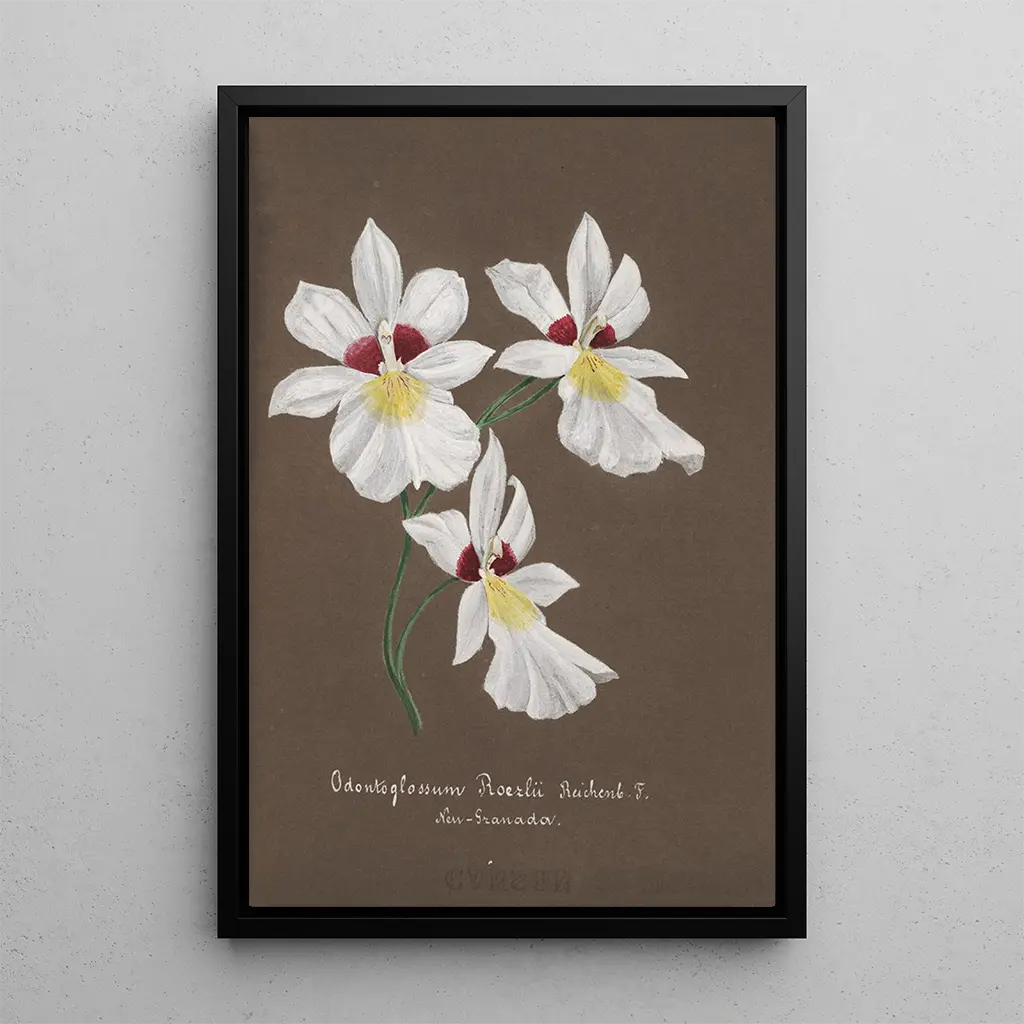 L'artista anonimo di quest'opera si inserisce in una lunga tradizione di rappresentazione floreale, dove ogni orchidea è un simbolo di raffinatezza e mistero. Questo stile artistico, che si è evoluto nel corso dei secoli, riflette un'epoca in cui la natura era celebrata per la sua bellezza e diversità. Gli artisti di questo periodo, spesso influenzati dal movimento romantico, cercavano di catturare l'essenza stessa dei fiori, facendo di questa stampa d'arte un esempio perfetto di questa ricerca estetica. Sebbene l'identità dell'artista sia perduta, la sua opera continua a brillare per la sua bellezza senza tempo.