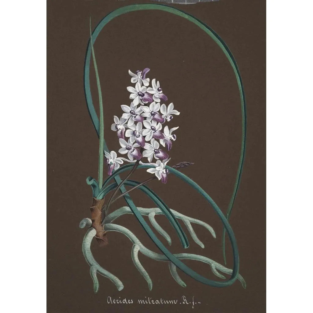 L'artista anonimo di quest'opera si inserisce in una tradizione artistica che valorizza la natura e la botanica. Le orchidee, spesso associate alla bellezza e all'amore, sono state un soggetto prediletto nell'arte floreale nel corso dei secoli. Questo periodo, segnato da un crescente interesse per la natura, ha visto artisti esplorare le forme e i colori delle piante con una precisione notevole. Le influenze culturali, in particolare quelle delle arti asiatiche, sono visibili nel modo in cui i fiori sono messi in scena, testimonianza di un dialogo tra arte e scienza.