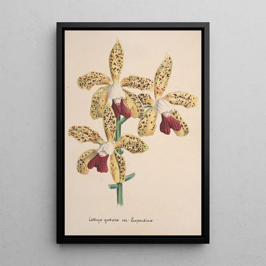 L'artista anonimo di quest'opera si inserisce in una ricca tradizione artistica, dove i fiori, e in particolare le orchidee, sono celebrati per la loro bellezza e simbolismo. Questo quadro proviene da un'epoca in cui l'arte floreale conosceva un grande sviluppo, in particolare nel XIX secolo, quando le esplorazioni botaniche affascinavano il pubblico. Sebbene l'identità dell'artista sia perduta nel tempo, la sua opera testimonia una grande maestria tecnica e una sensibilità verso la natura. Le influenze dell'epoca, segnate da un crescente interesse per la botanica e l'estetica floreale, si riscontrano in questa composizione vibrante e ricca di vita.