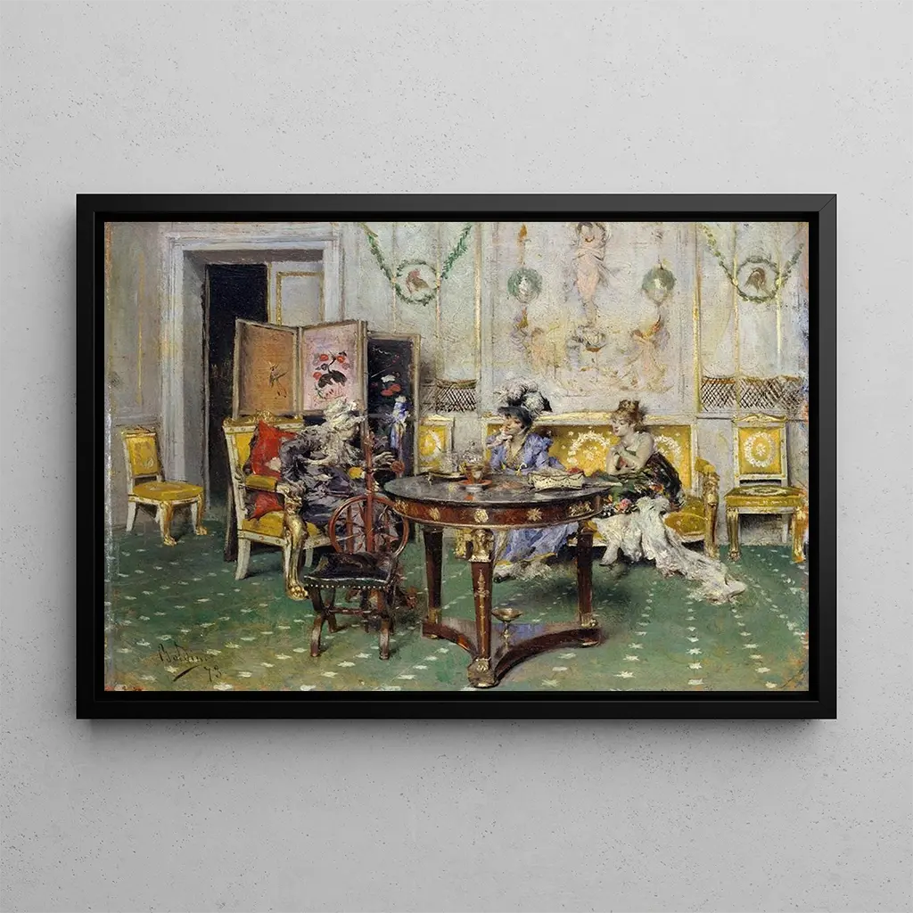 La riproduzione di "Commérages" è una scelta ideale per arricchire la vostra decorazione d'interni. Che si tratti di un soggiorno, di un ufficio o di una camera da letto, questa stampa d'arte aggiunge un tocco di raffinatezza e dinamismo. La qualità della riproduzione garantisce fedeltà ai dettagli e ai colori dell'opera originale, permettendo di godere dell'arte di Boldini nel vostro spazio vitale. L'attrattiva estetica di questa tela non mancherà di suscitare l'ammirazione dei vostri ospiti, creando al contempo un'atmosfera calda e accogliente.