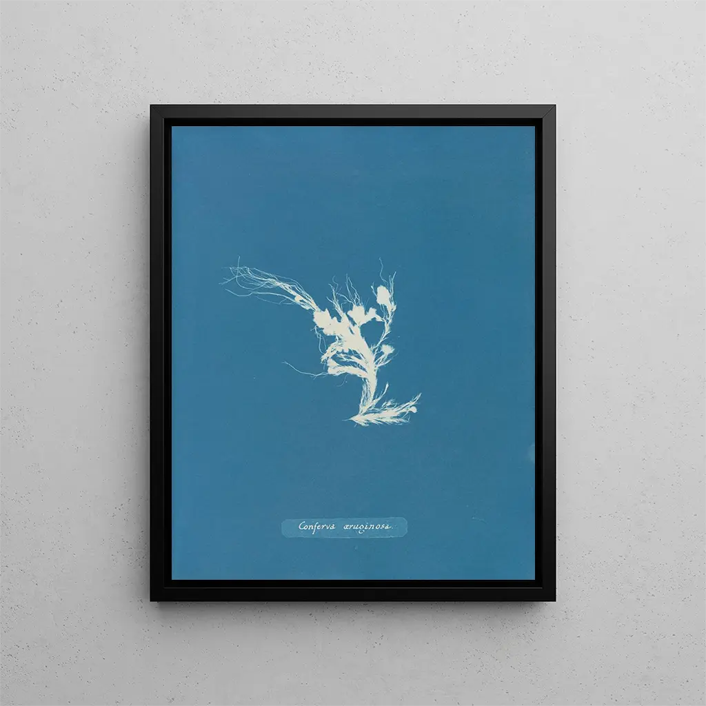 Nel affascinante mondo dell'arte botanica, l'opera "Conferva rouillé" di Anna Atkins si distingue per il suo approccio innovativo e la sua delicatezza visiva. Questo pezzo, che si inserisce nel movimento precursore della fotografia, incarna la fusione tra scienza ed estetica. Utilizzando la tecnica del cyanotype, Atkins ha saputo catturare la bellezza effimera delle alghe, trasformando un semplice campione in una [[Stampa d'arte]] senza tempo. La luce, l'ombra e le sfumature di blu si mescolano per creare un'atmosfera al tempo stesso serena e introspettiva, invitando lo spettatore a contemplare la natura sotto una nuova luce.
