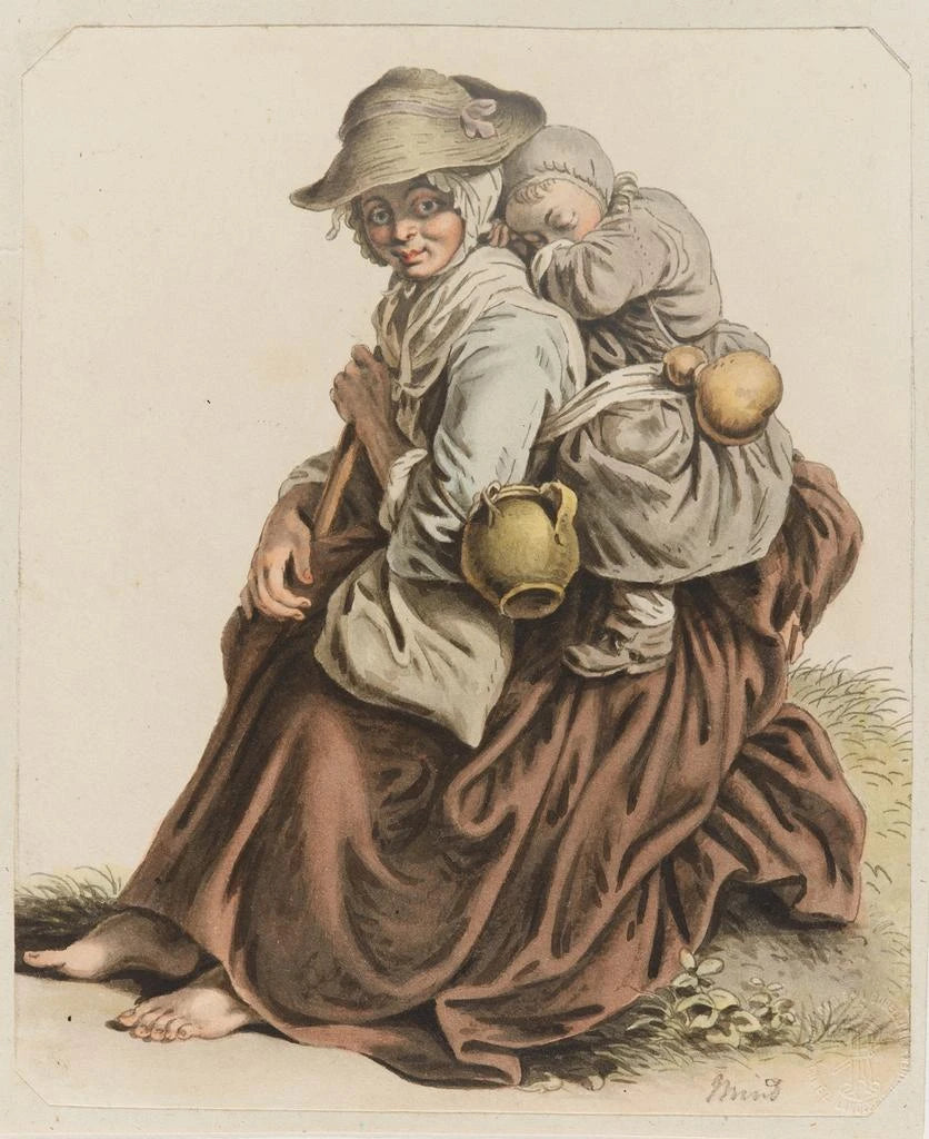 Contadino seduto con un bambino addormentato - Gottfried Mind