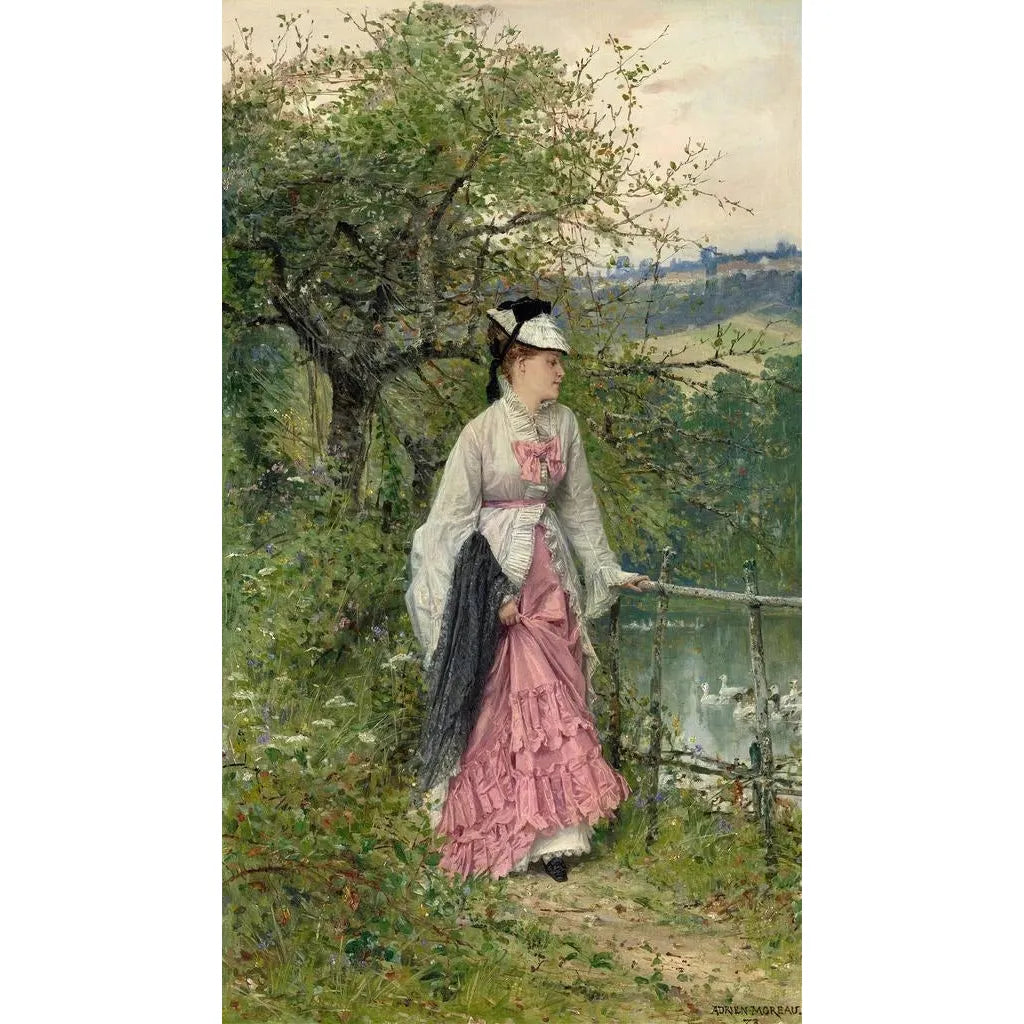 Contemplation : un'ode alla serenità La stampa d'arte di Contemplation di Adrien Moreau ci immerge in un universo di pace e riflessione. Quest'opera, ricca di dettagli, presenta una scena intima dove la luce soffusa accarezza i volti dei personaggi. I colori pastello, mescolando sfumature di blu e rosa, creano un'atmosfera rilassante, quasi sognante. La tecnica ad olio su tela permette all'artista di giocare con le texture, rendendo ogni elemento vivo e palpabile. L'insieme invita lo spettatore a fermarsi, a prendersi il tempo di osservare e di percepire le emozioni che emergono da questa composizione. Adrien Moreau : un maestro del realismo poetico Adrien Moreau, attivo nel XIX secolo, è riconosciuto per il suo stile che unisce realismo e romanticismo. Influenzato dai grandi maestri della sua epoca, sviluppa un approccio unico che mette in evidenza la bellezza dei momenti semplici. La sua carriera è segnata da una serie di opere che esplorano i temi della natura e dell'intimità umana. Moreau è spesso associato al movimento accademico, ma riesce a infondere una sensibilità personale alle sue creazioni. La riproduzione di Contemplation testimonia la sua abilità nel catturare istanti di vita, offrendo al contempo una riflessione sulla condizione umana. Una scelta decorativa con molteplici vantaggi La riproduzione di Contemplation è una scelta decorativa ideale per arricchire il vostro interno. Che sia in un soggiorno, uno studio o una camera da letto, questa stampa d'arte aggiunge un tocco di serenità ed eleganza. La qualità della riproduzione garantisce fedeltà ai dettagli originali, permettendo di godere appieno dell'opera di Adrien Moreau. L'attrattiva estetica di questa tela la rende un elemento centrale della vostra decorazione, stimolando conversazioni e riflessioni. Integrando quest'opera nel vostro spazio, invitate non solo la bellezza, ma anche un'atmosfera di contemplazione e pace.
