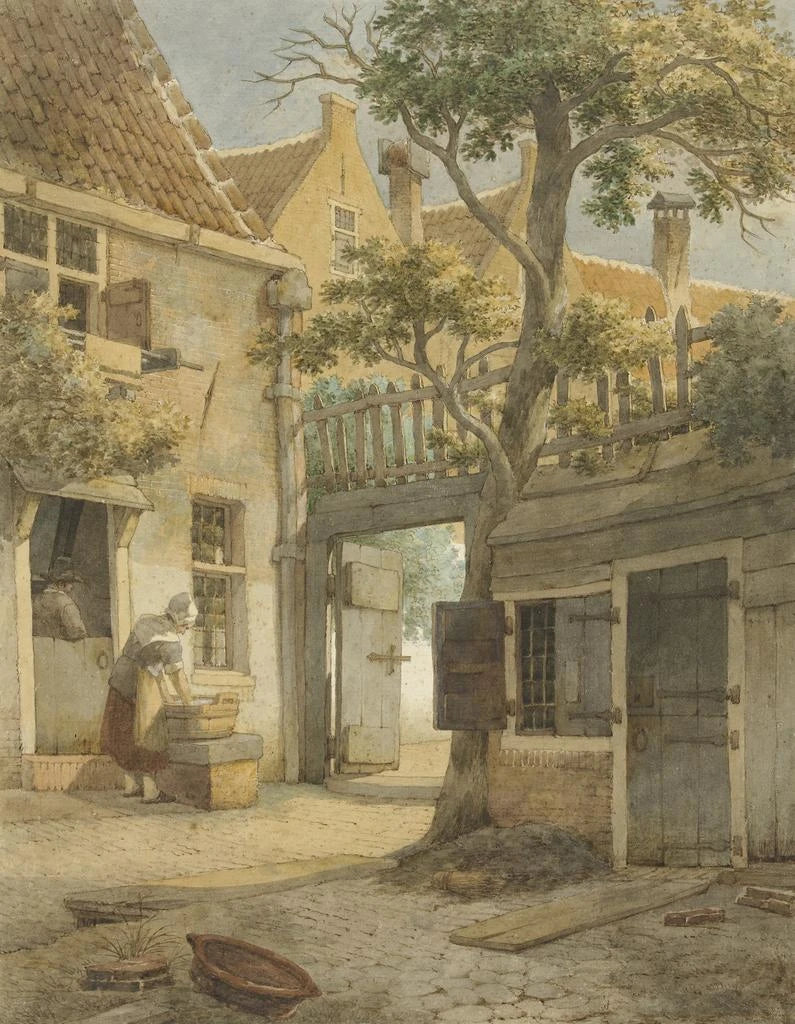 Nel tumulto della storia dell'arte, alcune opere riescono a catturare l'essenza di un'epoca, a evocare ricordi e a suscitare emozioni. "Cour d'une cour à Amsterdam - Daniël Kerkhoff" si inserisce in questa tradizione. Quest'opera, intrisa di serenità e nostalgia, ci trasporta nel cuore di Amsterdam, rivelando la bellezza dei cortili interni, spesso dimenticati, che sono testimoni silenziosi della vita urbana. La luce soffusa che filtra attraverso gli alberi, i muri di mattoni invecchiati dal tempo e l'atmosfera pacifica che si sprigiona da questa scena ci invitano a una contemplazione meditativa. Attraverso questa stampa d'arte, l'artista riesce a immortalare un momento fugace, un istante di calma in una città vibrante.