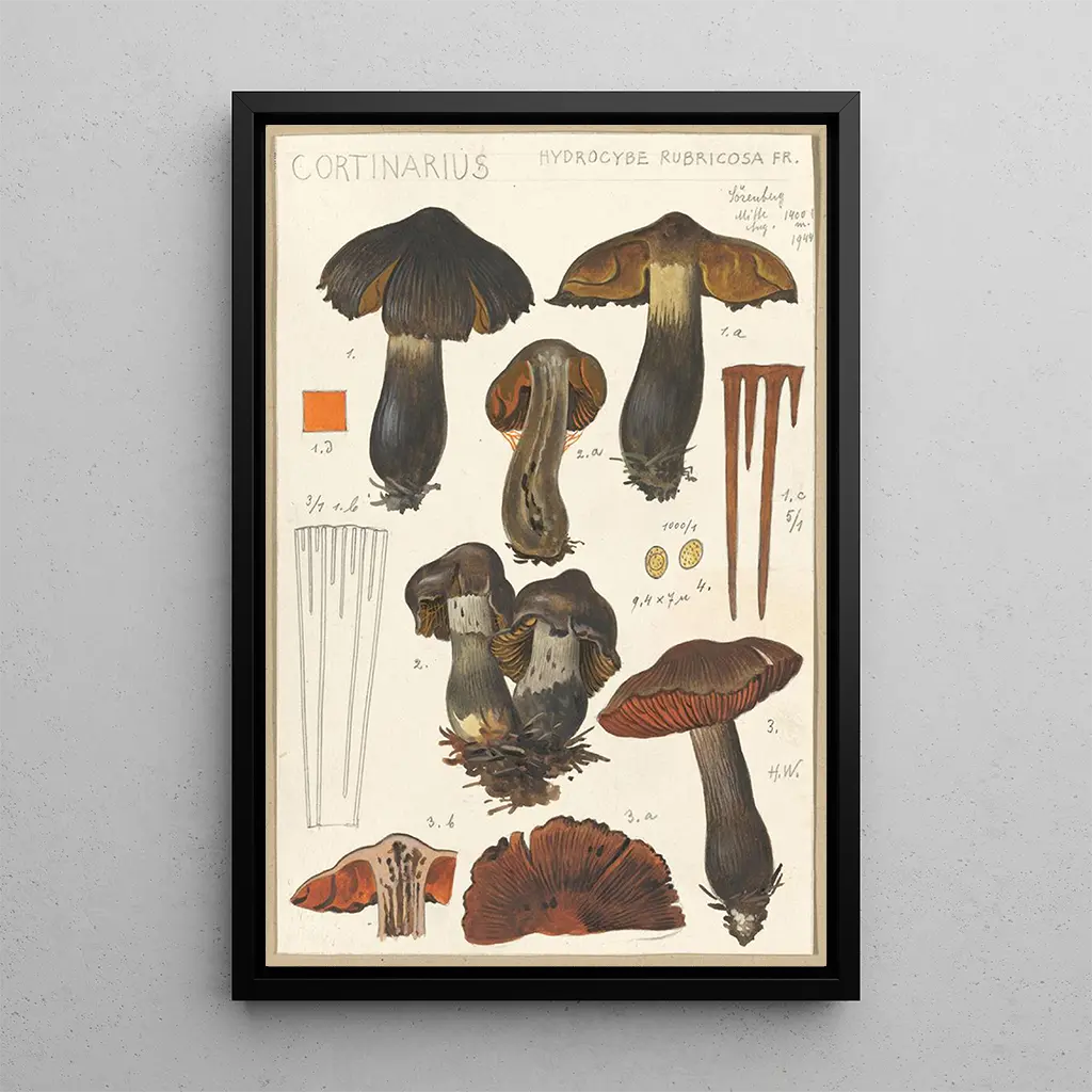 La stampa d'arte dell'opera "Cortinaire" di Hans Baldung ci immerge in un universo affascinante dove la natura e l'immaginario si incontrano. I colori vibranti, che vanno dal verde profondo ai marroni terrosi, creano un'atmosfera al tempo stesso mistica e organica. La tecnica di Baldung, caratterizzata da pennellate audaci e da un'attenzione meticolosa ai dettagli, dà vita a questo fungo in un gioco di ombra e luce. Ogni elemento della tela sembra respirare, invitando lo spettatore a esplorare le sottigliezze della composizione e a interrogarsi sul messaggio nascosto dietro questa rappresentazione.