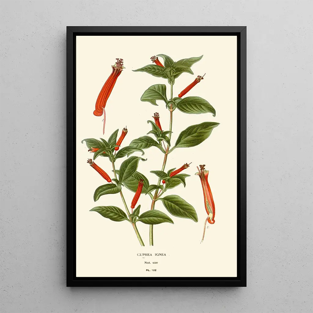 Cuphea ignea : un'esplosione di colori vivaci La stampa d'arte di Cuphea ignea di Edward Step è una vera ode alla natura, catturando l'essenza stessa di questa pianta esotica. Le tonalità vivaci di rosso e arancione si mescolano armoniosamente, creando un'atmosfera calda e accogliente. La tecnica di Step, che combina precisione botanica e sensibilità artistica, permette di percepire la delicatezza dei petali e la ricchezza del fogliame. Ogni dettaglio è accuratamente riprodotto, invitando lo spettatore a immergersi in un mondo in cui la bellezza naturale è in primo piano. Quest'opera, con il suo splendore, evoca una sensazione di gioia e vitalità, perfetta per ravvivare qualsiasi spazio. Edward Step : un pioniere dell'arte botanica Edward Step, botanico e artista del XIX secolo, ha saputo unire le sue passioni per la scienza e l'arte. Il suo lavoro si distingue per un approccio meticoloso e un'attenzione ai dettagli, influenzato dai movimenti artistici del suo tempo, in particolare il prerafaelismo. Step ha dedicato gran parte della sua vita allo studio delle piante, e le sue opere sono spesso considerate riferimenti nel campo dell'illustrazione botanica. Catturando la bellezza dei fiori con tale precisione, ha contribuito all'educazione e alla valorizzazione delle scienze naturali, lasciando un'eredità artistica duratura. Un acquisto decorativo con molteplici vantaggi La stampa d'arte di Cuphea ignea è un elemento decorativo ideale per diversi spazi come il soggiorno, l'ufficio o anche la camera da letto. La sua palette di colori vivaci porta un tocco di freschezza e dinamismo al vostro interno, favorendo un'atmosfera rilassante. La qualità della stampa garantisce una fedeltà notevole ai dettagli dell'opera originale, permettendo di apprezzare appieno la bellezza di questa pianta. Scegliendo questa tela, optate per un elemento decorativo che non solo abbellisce il vostro spazio, ma che evoca anche una connessione profonda con la natura.