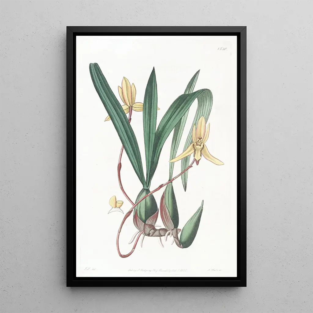 Cymbidium a bordo rosso : una danza floreale vibrante Il quadro Cymbidium a bordo rosso, realizzato da Sydenham Edwards, ci immerge in un universo botanico dove la bellezza dei fiori sboccia con brillantezza. Le tonalità vivaci e contrastanti di rosso e verde si intrecciano per creare un’atmosfera vivace e gioiosa. La tecnica dell’acquarello, padroneggiata dall’artista, permette di rendere la delicatezza dei petali offrendo al contempo una profondità all’insieme. Ogni dettaglio è accuratamente osservato, invitando lo spettatore a una contemplazione attenta della natura. Questo quadro è molto più di una semplice rappresentazione; evoca la leggerezza e la grazia dei cymbidium, trasportando l’osservatore in un giardino rigoglioso. Sydenham Edwards : un pioniere dell’illustrazione botanica Sydenham Edwards, attivo all’inizio del XIX secolo, è riconosciuto come uno dei primi illustratori botanici della sua epoca. Il suo lavoro è stato fortemente influenzato dal movimento romantico, che valorizzava la natura e l’osservazione minuziosa. In qualità di artista e botanico, ha contribuito alla documentazione di numerose specie vegetali, rendendo omaggio alla diversità della flora. Le sue opere, spesso pubblicate in volumi specializzati, hanno svolto un ruolo cruciale nella sensibilizzazione alla botanica e alla conservazione delle piante. Edwards ha saputo unire arte e scienza, lasciando un’eredità duratura nel campo dell’illustrazione. Una riproduzione decorativa con molteplici vantaggi La riproduzione del quadro Cymbidium a bordo rosso costituisce un elemento decorativo ideale per diversi spazi abitativi. Che si tratti di un soggiorno, di un ufficio o di una camera da letto, questa stampa d’arte aggiunge un tocco di freschezza e vitalità. La qualità della riproduzione garantisce fedeltà ai colori e ai dettagli dell’opera originale, permettendo di apprezzare tutta la raffinatezza dell’illustrazione. L’attrattiva estetica di questa opera la rende una scelta perfetta per chi desidera arricchire la propria decorazione d’interni con una nota floreale e artistica. Integrando questa stampa d’arte nel vostro spazio, invitate la natura e la bellezza a sbocciare intorno a voi.