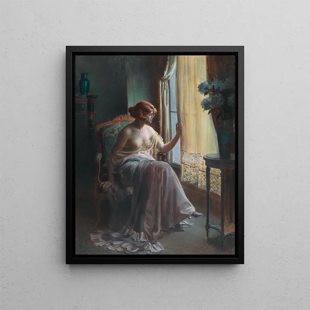 Nel affascinante universo dell'arte, alcune opere riescono a catturare l'essenza stessa dell'intimità e della bellezza femminile. "Dame au boudoir", dipinta da Delphin Enjolras, è senza dubbio una di queste creazioni che trascende il semplice quadro per diventare una vera finestra aperta su un mondo di delicatezza e sensualità. Quest'opera, che evoca un momento di pausa e contemplazione, ci immerge nell'universo raccolto di un boudoir, dove la luce gioca con le ombre per rivelare la grazia del suo modello. Enjolras, maestro del ritratto, riesce a immortalare un'atmosfera allo stesso tempo intima ed elegante, invitando lo spettatore a condividere questo momento di dolcezza.