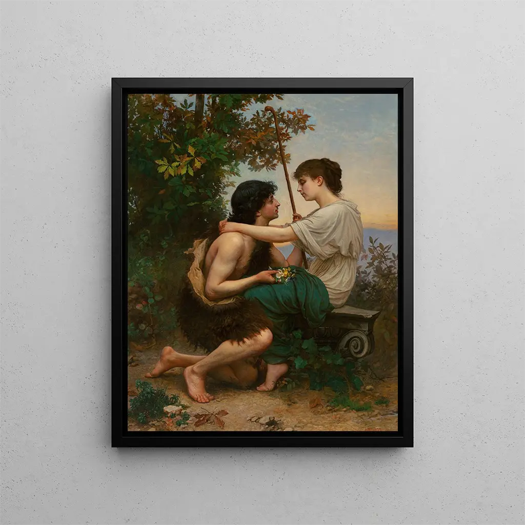 Nel mondo dell'arte, alcune opere trascendono il semplice quadro della pittura per diventare racconti visivi pieni di emozione e poesia. "Daphnis e Chloé" di Camille Félix Bellanger ne è un esempio brillante. Quest'opera, ispirata alla storia d'amore mitologica tra Daphnis e Chloé, evoca la bellezza della natura e la purezza dei sentimenti. Immergendosi in questa stampa d'arte, lo spettatore viene immediatamente trasportato in un universo in cui l'amore e la natura si intrecciano, creando un'atmosfera allo stesso tempo serena e incantata. La delicatezza dei tratti e la ricchezza dei colori invitano a una contemplazione profonda, rendendo ogni sguardo sul quadro unico e personale.