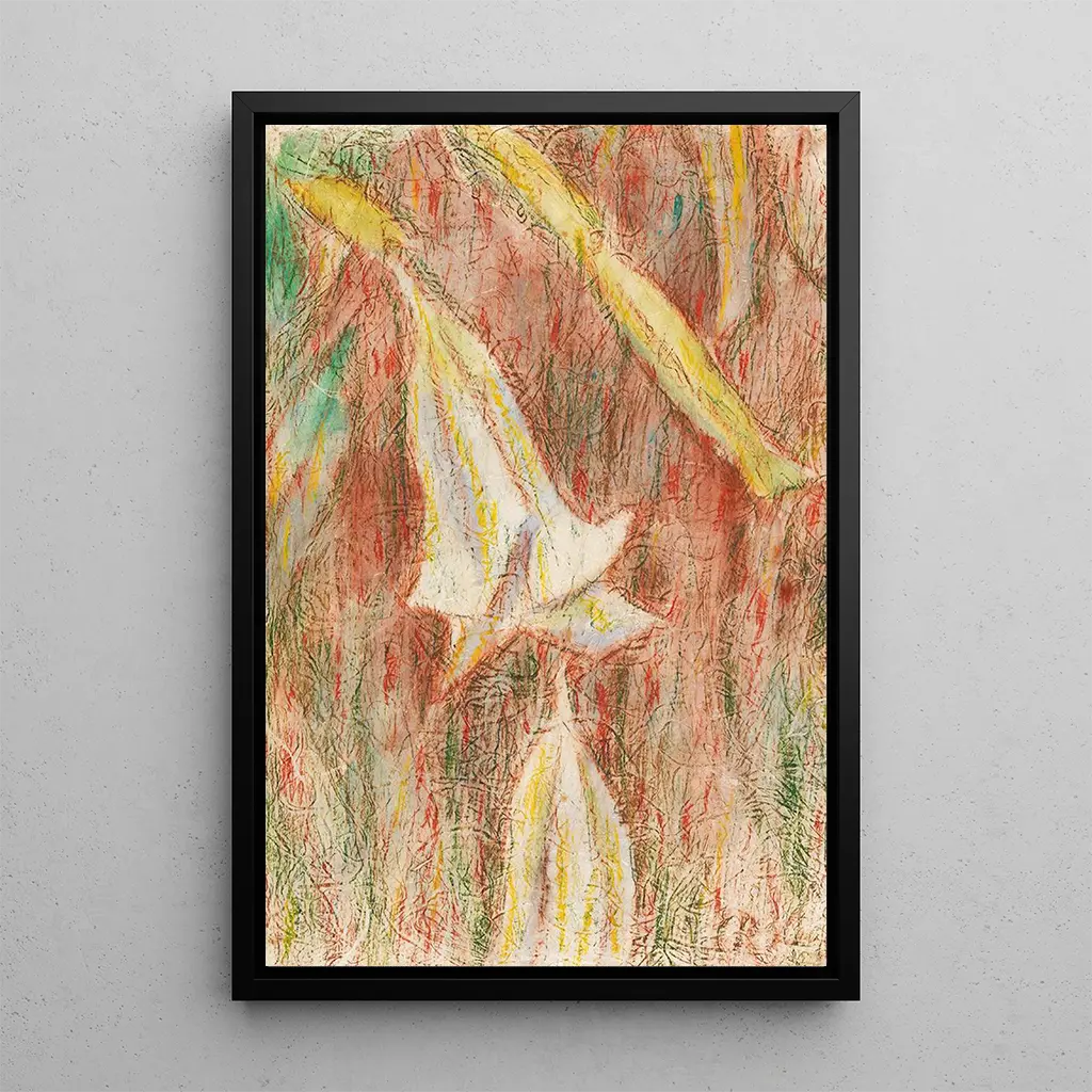La tela "Datura Japonica Trompettes des anges" di Christian Rohlfs presenta una composizione affascinante in cui i fiori, come trombe delicate, si elevano con grazia. Le tonalità pastello, mescolando sfumature di bianco, viola e verde, creano un'atmosfera dolce e sognante. La tecnica di Rohlfs, con i suoi tocchi di pennello fluidi e l'uso sottile della luce, evoca una sensazione di leggerezza e serenità. Ogni fiore sembra vibrare di una vita propria, invitando lo spettatore a immergersi in questo universo floreale incantato. Questa stampa d'arte del quadro è un vero omaggio alla bellezza effimera della natura.