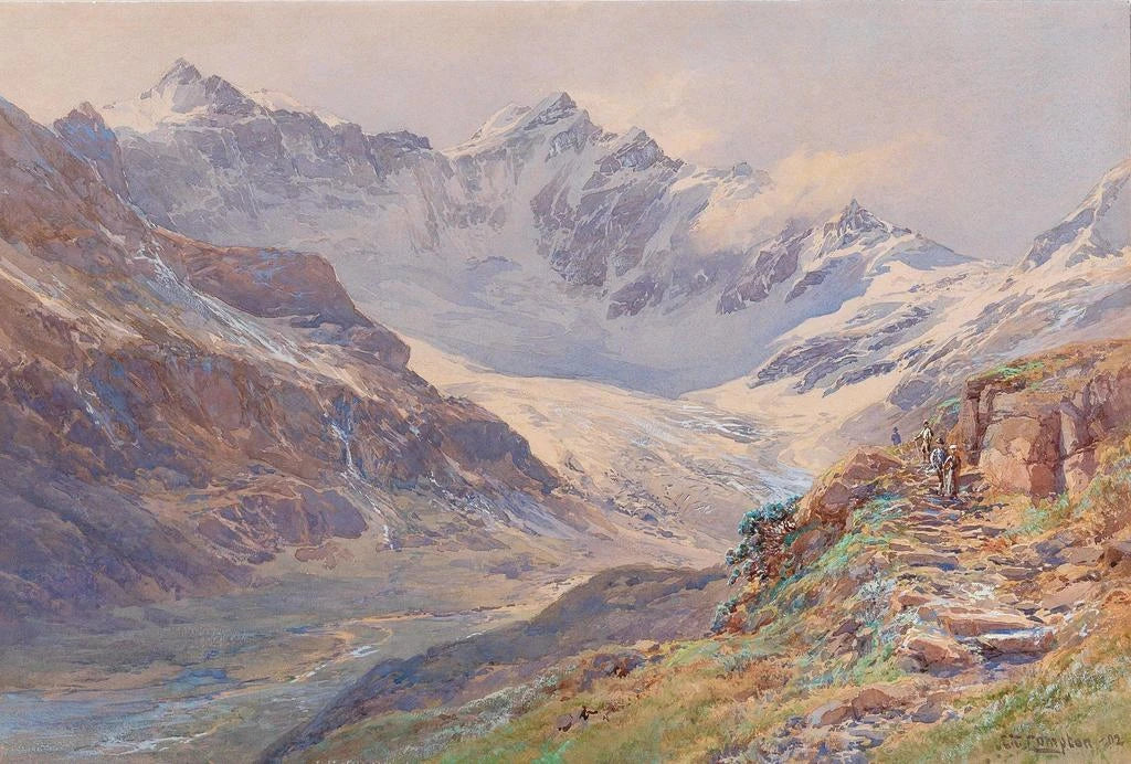 Edward Theodore Compton, pittore britannico del XIX secolo, è riconosciuto per i suoi paesaggi ispirati dalla natura selvaggia. Influenzato dal movimento romantico, ha saputo catturare la bellezza delle montagne e delle valli con una sensibilità unica. La sua carriera si estende per diversi decenni, durante i quali ha viaggiato attraverso l'Europa, impregnandosi dei paesaggi che poi ha immortalato su tela. Compton è stato anche un fervente difensore della natura, e la sua opera testimonia una profonda ammirazione per le meraviglie del mondo naturale. La sua capacità di trasmettere l'emozione e la grandezza dei paesaggi lo rende una figura importante dell'arte paesaggistica.