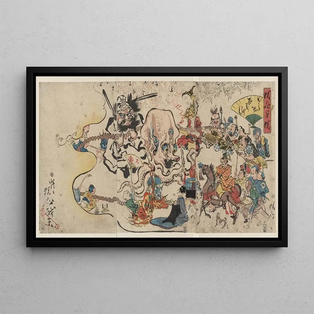 Dke Hyakumanben : una fresca di vita e di colori La stampa d'arte Dke Hyakumanben di Kawanabe Kyōsai è un'opera vibrante che evoca una moltitudine di personaggi e scene della vita quotidiana giapponese. I colori vivaci e i dettagli minuziosi immergono lo spettatore in un universo ricco di emozioni e storie. La tecnica dell'estampe, tipica dell'epoca Edo, permette all'artista di giocare con la luce e l'ombra, creando un'atmosfera dinamica e vivace. Ogni figura, ogni gesto, sembra raccontare una storia, invitando alla contemplazione e all'interpretazione personale. Kawanabe Kyōsai : un maestro dell'ukiyo-e del XIX secolo Kawanabe Kyōsai, attivo durante la seconda metà del XIX secolo, è uno degli ultimi grandi maestri dell'ukiyo-e, uno stile di stampa giapponese che ha raggiunto il suo apice durante l'epoca Edo. Influenzato dalle tradizioni artistiche del suo tempo, ha saputo integrare elementi della cultura occidentale pur preservando l'essenza dell'arte giapponese. La sua carriera è stata segnata da una volontà di sperimentazione e innovazione, che gli ha permesso di distinguersi in un ambiente artistico in piena trasformazione. Le sue opere, come Dke Hyakumanben, testimoniano la sua abilità nel catturare la vita in tutte le sue forme, rendendolo una figura imprescindibile della storia dell'arte giapponese. Una creazione decorativa con molteplici vantaggi La stampa d'arte Dke Hyakumanben è un elemento decorativo che si integra armoniosamente in diversi spazi, sia un soggiorno, uno studio o una camera da letto. La qualità di stampa e la fedeltà ai colori originali garantiscono un risultato estetico impressionante, aggiungendo un tocco di esotismo e cultura al vostro interno. Questo quadro cattura lo sguardo e stimola conversazioni, rendendolo un elemento centrale della vostra decorazione. Scegliendo questa tela, optate per un'opera che unisce bellezza, storia e tradizione, arricchendo in modo significativo il vostro ambiente.