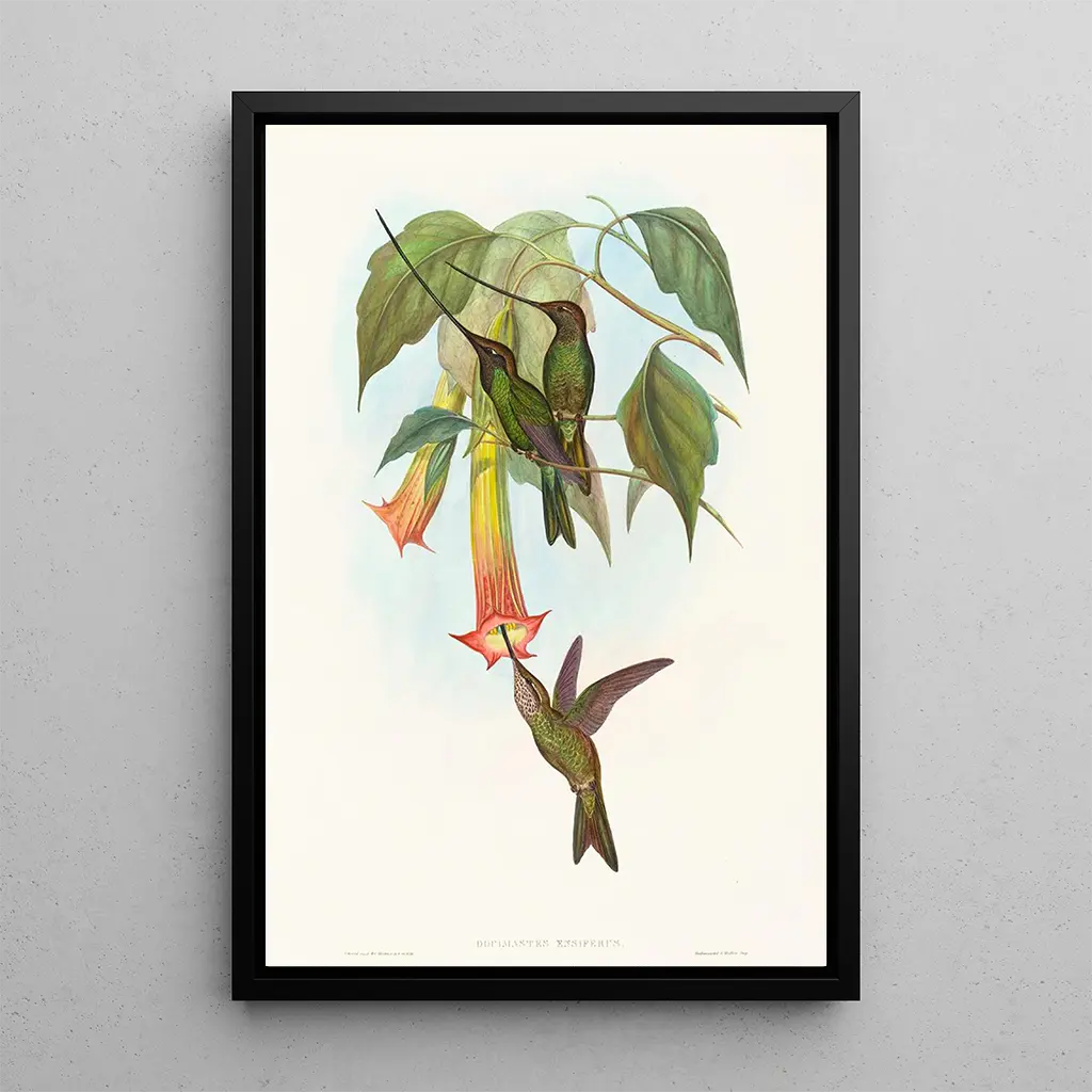 Questa stampa d'arte del quadro Docimastes ensiferus è una scelta ideale per abbellire il vostro interno, che sia in un soggiorno, uno studio o una camera da letto. La qualità di stampa e la fedeltà ai dettagli originali fanno di questa tela un vero e proprio elemento decorativo. L'opera di Gould, con il suo indiscutibile fascino estetico, porta un tocco di natura ed eleganza nel vostro spazio. Integrando questo pezzo nella vostra decorazione, non solo invitate la bellezza della fauna nel vostro quotidiano, ma rendete anche omaggio all'eredità artistica e scientifica di John Gould.