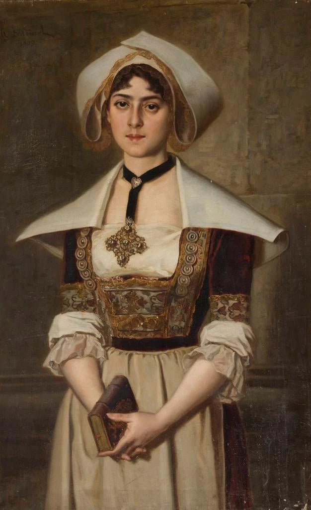 La stampa d'arte della Femme bretonne di Maurycy Sztencel rivela una scena vibrante ed emotiva, dove la bellezza dei costumi tradizionali bretoni si illumina sotto una luce soffusa. I colori ricchi e terrosi, che vanno dai blu profondi ai rossi vivaci, evocano il calore e la vitalità della cultura bretonica. La tecnica di Sztencel, che combina realismo e tocchi impressionisti, crea un'atmosfera al tempo stesso intima e universale, invitando lo spettatore a immergersi nella storia e nelle usanze di questa regione. Ogni dettaglio del volto e degli abiti racconta una storia, rendendo questa opera affascinante e piena di vita.