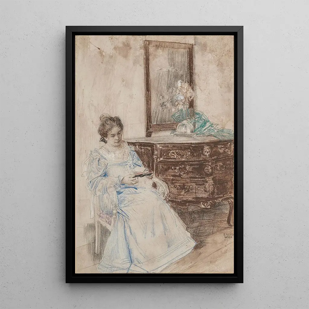 In questa stampa d'arte dell'opera "Femme lisant", Eduard Veith cattura un momento di serenità e introspezione. La composizione mette in evidenza una donna assorbita dalla sua lettura, immersa in un universo di parole e pensieri. I colori morbidi e rilassanti, dominati da tonalità pastello, creano un'atmosfera calda e accogliente. La tecnica di Veith, che combina realismo e impressionismo, permette di percepire la texture dei vestiti e la luce soffusa che inonda la scena. Ogni dettaglio, dal libro alle espressioni delicate della donna, contribuisce a un'atmosfera di calma e riflessione.