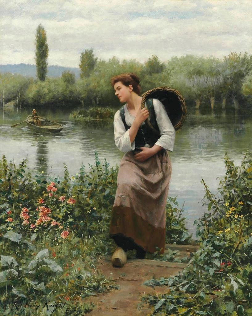 Stampa d'arte | Una donna con una cesta - Daniel Ridgway Knight