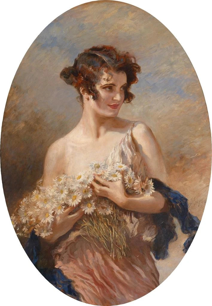 Stampa d'arte | Donna con un mazzo di margherite - Leopold Schmutzler