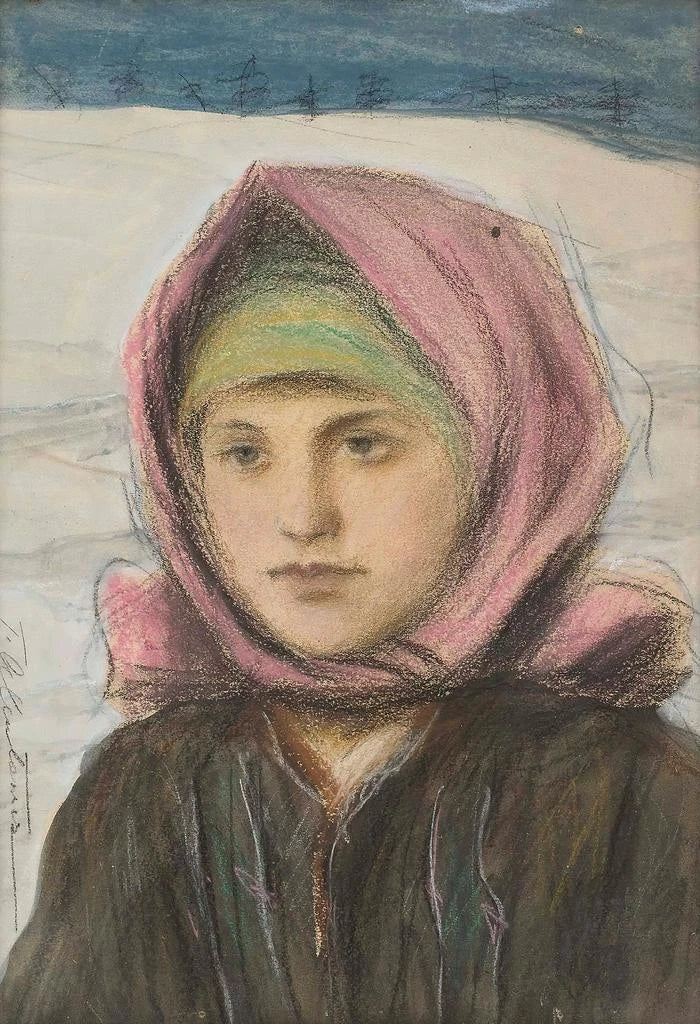 Teodor Axentowicz, attivo alla fine del XIX secolo, è riconosciuto per i suoi ritratti che catturano l'essenza della vita quotidiana in Slovacchia. La sua formazione all'Accademia di Belle Arti di Cracovia e i suoi viaggi attraverso l'Europa hanno arricchito il suo stile, mescolando influenze realistiche e simboliste. Axentowicz ha saputo immortalare le tradizioni e le usanze del suo paese, facendo delle sue opere un prezioso testimone della sua epoca. "Femme montagnarde" si inserisce perfettamente in questa impostazione, mettendo in luce la bellezza e la forza delle donne rurali.