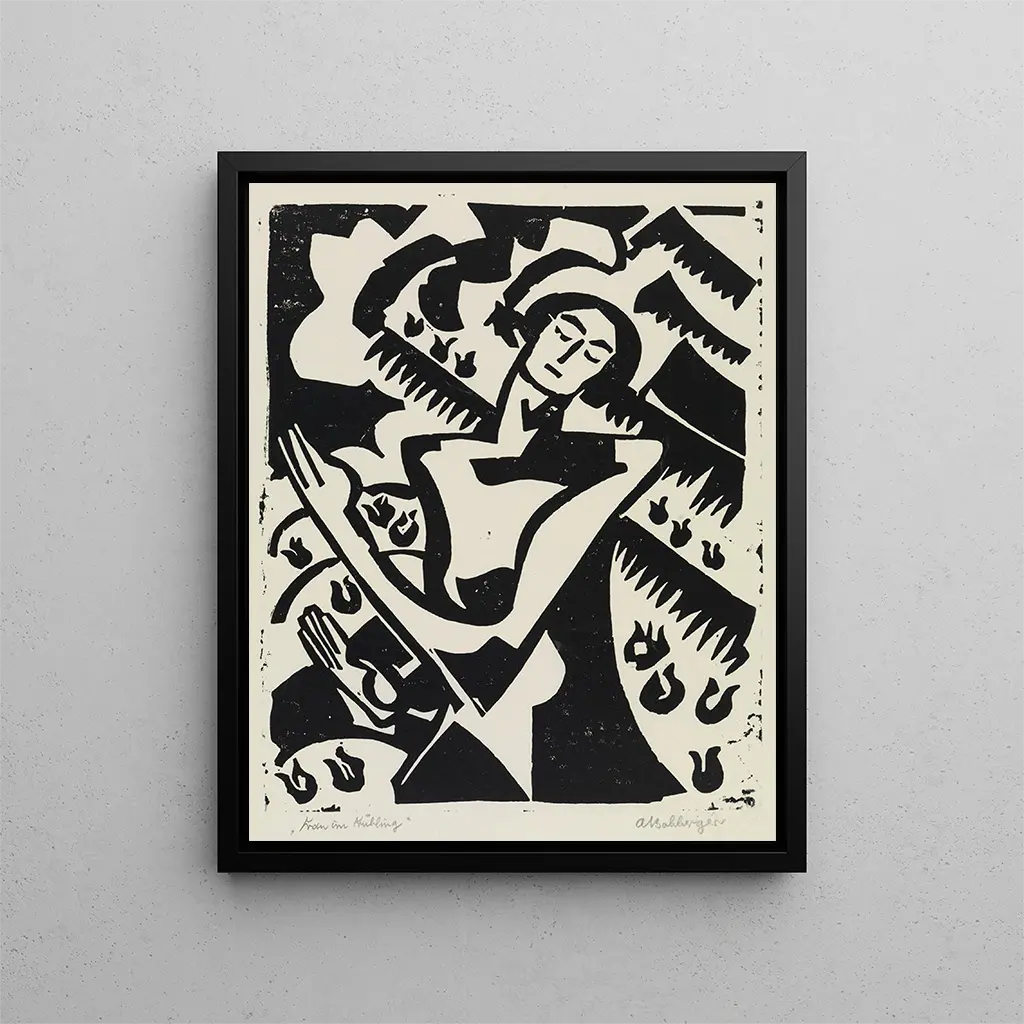 La Stampa d'arte "Femme au printemps" di August Babberger evoca con finezza e delicatezza la bellezza effimera della natura e la grazia femminile. In questa tela, l'artista riesce a catturare l'essenza stessa della primavera, una stagione sinonimo di rinnovamento e vitalità. La donna rappresentata, in mezzo a un giardino rigoglioso, sembra incarnare questo periodo di fioritura, dove ogni petalo e ogni filo d'erba vibrano di una nuova energia. Quest'opera, allo stesso tempo poetica e immersiva, trasporta lo spettatore in un universo in cui la bellezza naturale e la sensualità si mescolano armoniosamente. La luce soffusa e i colori pastello rafforzano questa atmosfera sognante, invitando ciascuno a una contemplazione rilassante.