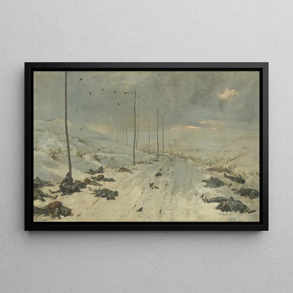 Après le Combat : une représentation poignante de la guerre La stampa d'arte "Après le Combat" nous offre une vision saisissante des conséquences de la guerre. Ce tableau, empreint de réalisme, dépeint des soldats épuisés, témoignant de la brutalité du conflit. Les couleurs sombres et terreuses dominent la composition, créant une atmosphère lourde et mélancolique. La technique de Vasily Vereshchagin, maître du réalisme, se manifeste par des détails minutieux qui capturent l'émotion brute des personnages. Chaque visage raconte une histoire, et chaque geste évoque la souffrance et la résilience humaine. Cette œuvre nous invite à réfléchir sur les ravages de la guerre et l'impact sur ceux qui la vivent. Vasily Vereshchagin : l'artiste engagé du XIXe siècle Vasily Vereshchagin, peintre russe du XIXe siècle, est reconnu pour son engagement envers la représentation réaliste des conflits militaires. Influencé par ses expériences personnelles sur le champ de bataille, il a cherché à dépeindre la guerre non pas comme une glorification, mais comme une tragédie humaine. Ses œuvres, souvent marquées par une forte charge émotionnelle, ont eu un impact significatif sur la perception de la guerre à son époque. "Après le Combat" s'inscrit dans cette lignée, offrant une critique puissante de la violence et de ses conséquences, tout en affirmant la place de Vereshchagin dans l'histoire de l'art. Une acquisition décorative aux multiples atouts Cette stampa d'arte du tableau "Après le Combat" constitue un ajout poignant à votre décoration intérieure. Que ce soit dans un salon, un bureau ou une chambre, cette œuvre attire l'œil et suscite la réflexion. Sa qualité d'impression assure une fidélité remarquable aux nuances et aux détails de l'œuvre originale, tout en apportant une profondeur émotionnelle à votre espace. En intégrant cette toile dans votre décor, vous ne vous contentez pas d'embellir votre intérieur, mais vous invitez également une conversation sur l'art, l'histoire et l'humanité, faisant de cette stampa d'arte un choix à la fois esthétique et significatif.